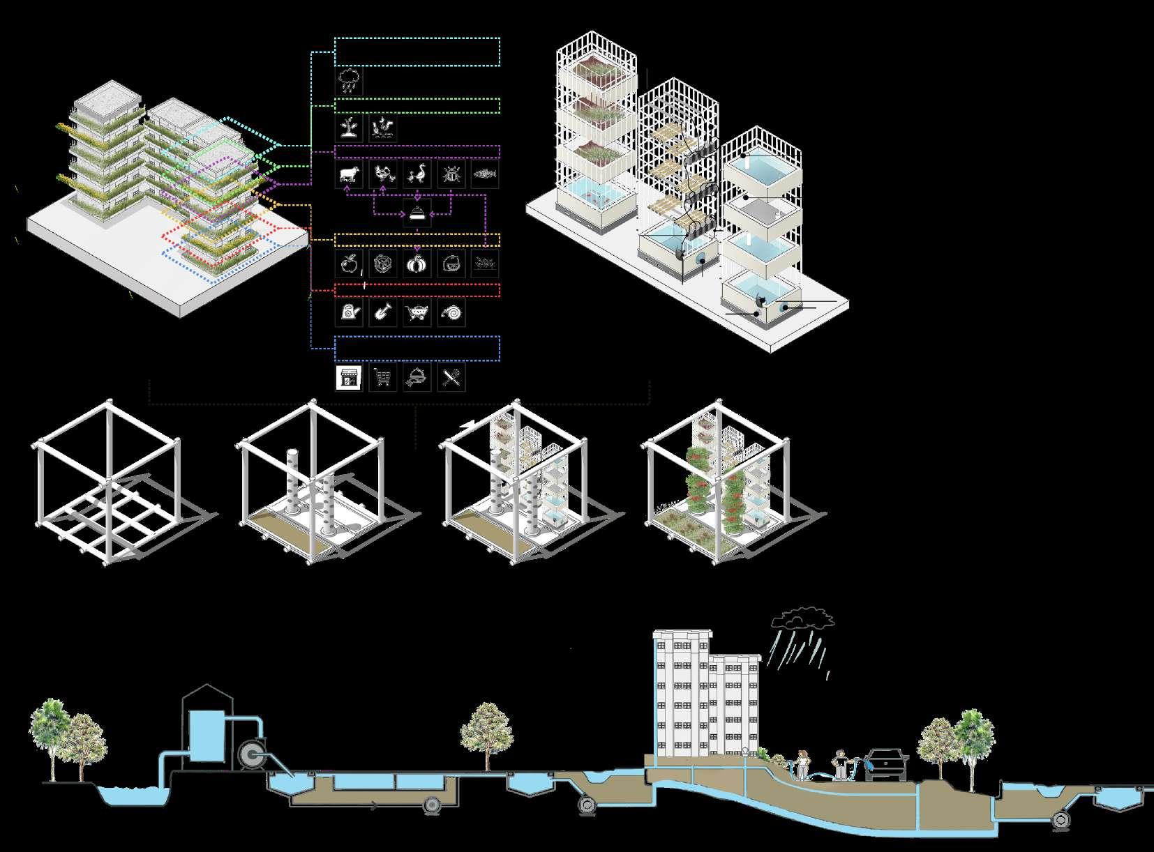 a sustainable modular agricultural system integrate new liketechnology vertical farming, system,aquponicroof garden,incubatoralgae