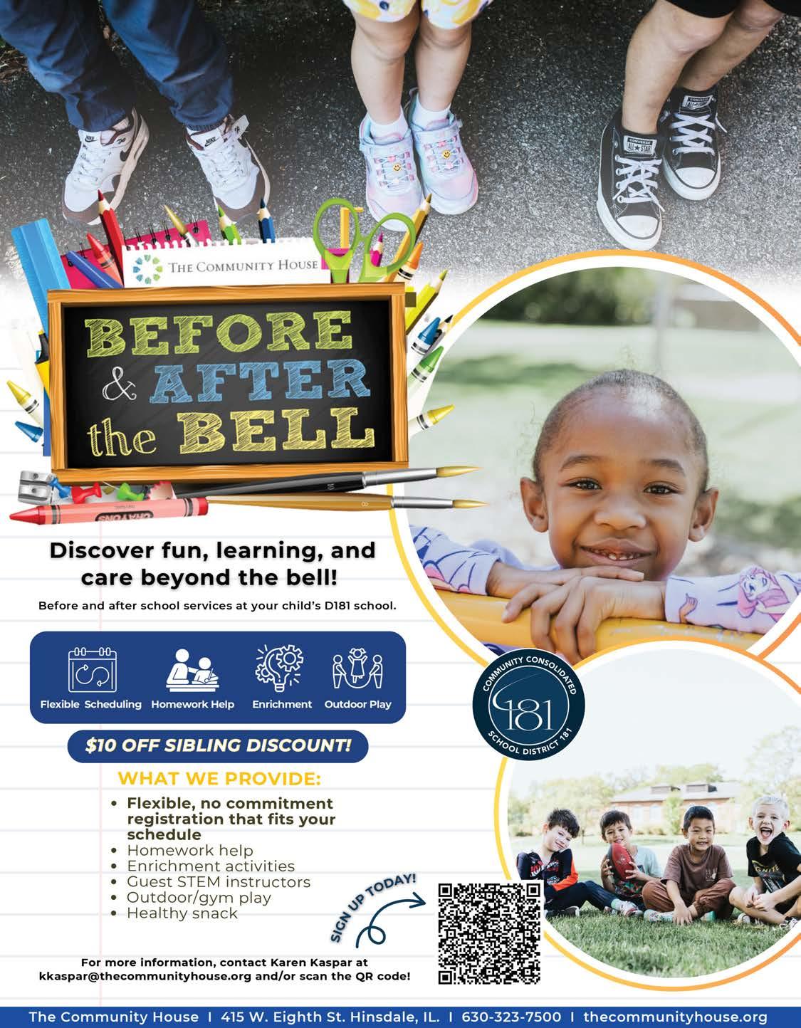 Autumn is a time of new beginnings—of learning, gathering, and reconnecting—and there’s no better place to do that than The Community House. This guide is filled with programs and opportunities for all ages: from our signature after-school program, held right in your District 181 school, our fall Senior Resource Expo on page 56 and chances to gather with your community to be a part of something bigger at the Holiday Ball in December. Whether you’re continuing a favorite tradition or trying something new, we’re here to help you feel at home.