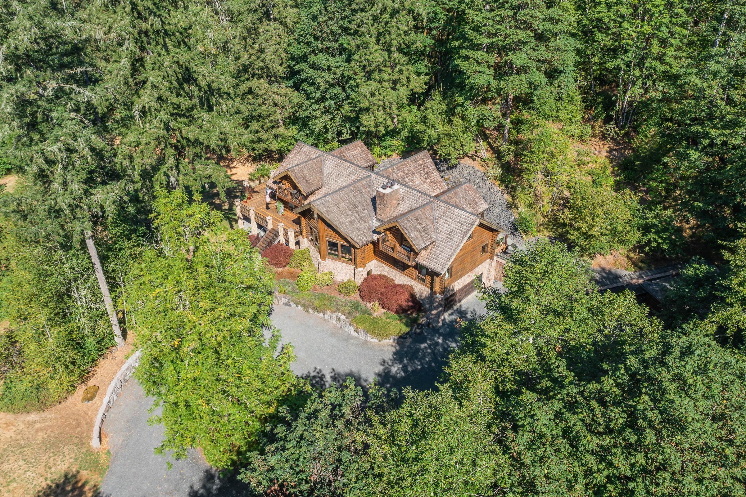 This warm and inviting home is cradled in an 18.5-acre evergreen and hardwood forest. It is filled with floor to ceiling custom wood designs, art carvings, inlays, and historic materials all hand constructed together by expert craftsperson’s to create perfect fit and finish throughout.