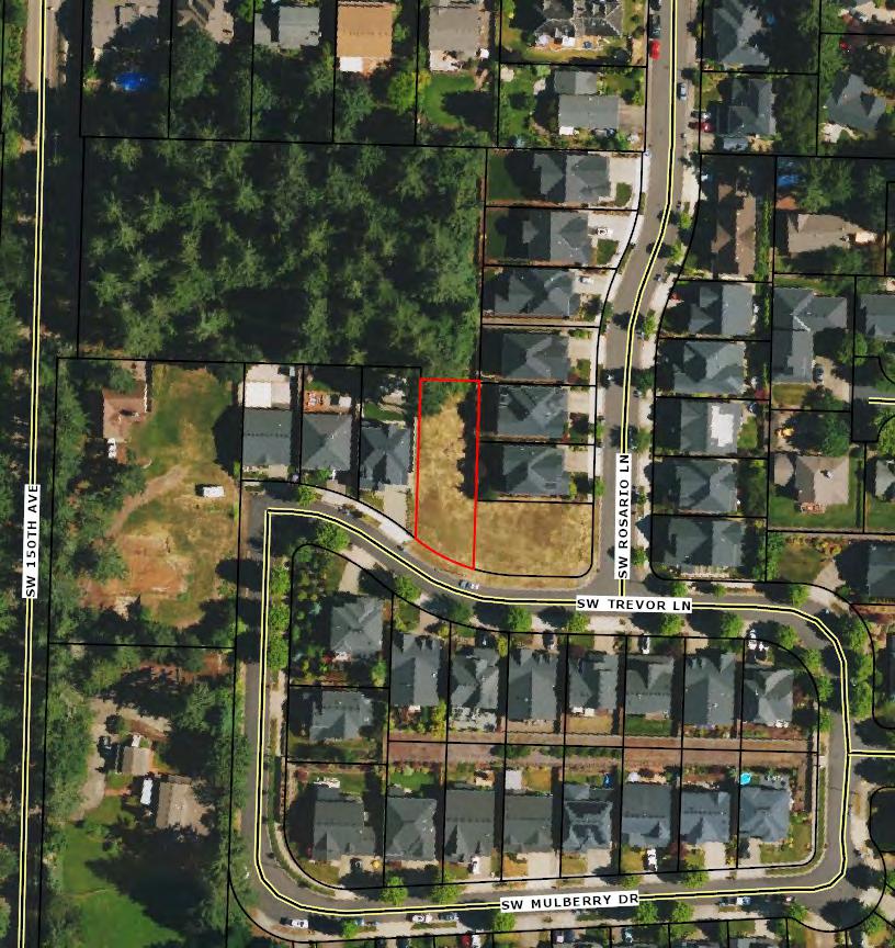 S W 1 5 0 T H A V E S W 1 4 6 T H A V E SW BEEF BEND RD SW JORDY CT S W TRE V OR LN SW ROSARIO LN SW MULBERRY DR This map is a copy of public record and is provided solely for information purposes. WFG National Title assumes no liability for variations, if any, in dimensions, area or location of the premises or the location of improvements. Customer Service Department 12909 SW 68th Parkway, Suite 350 Portland, OR 97223 (503) 603-1700 cs@wfgnationaltitle.com 0 60 120 30 Feet Aerial Subject Property Tax Lots ²
