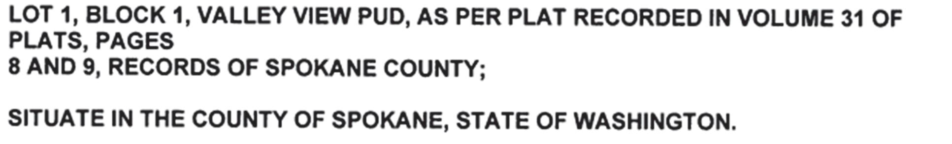 “A” The real property described above is commonly known as: 1612 S Lloyd Lane Spokane, WA 99212