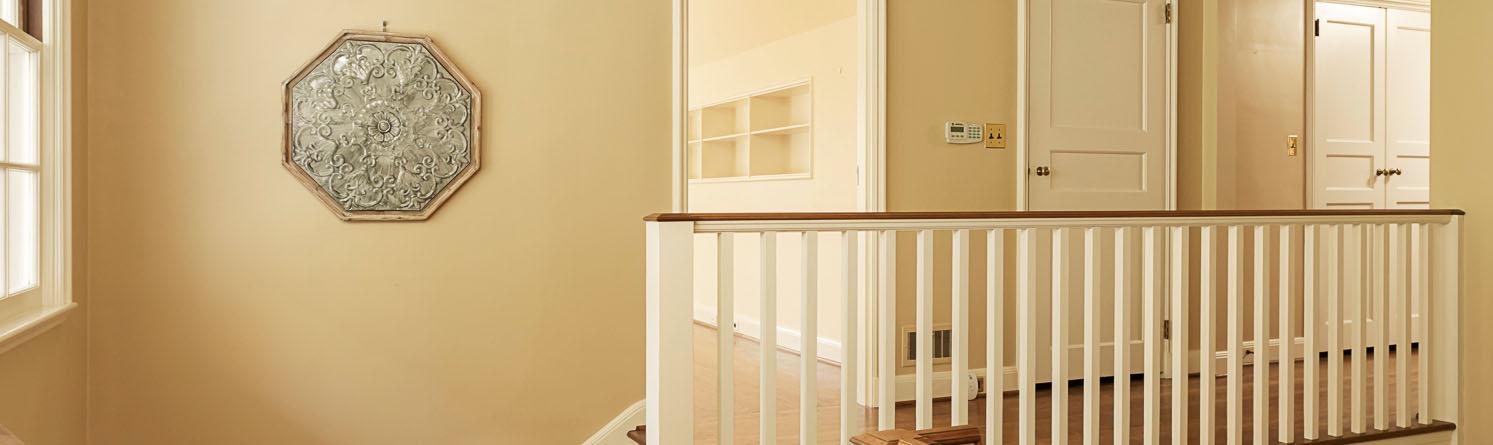The gourmet kitchen features a granite cooking island, high end appliances, white wood cabinetry, and additional storage in the adjacent butler’s pantry. It opens to the family room with a vaulted ceiling and skylights, and French doors that lead to the stone patio overlooking Governor’s Park.