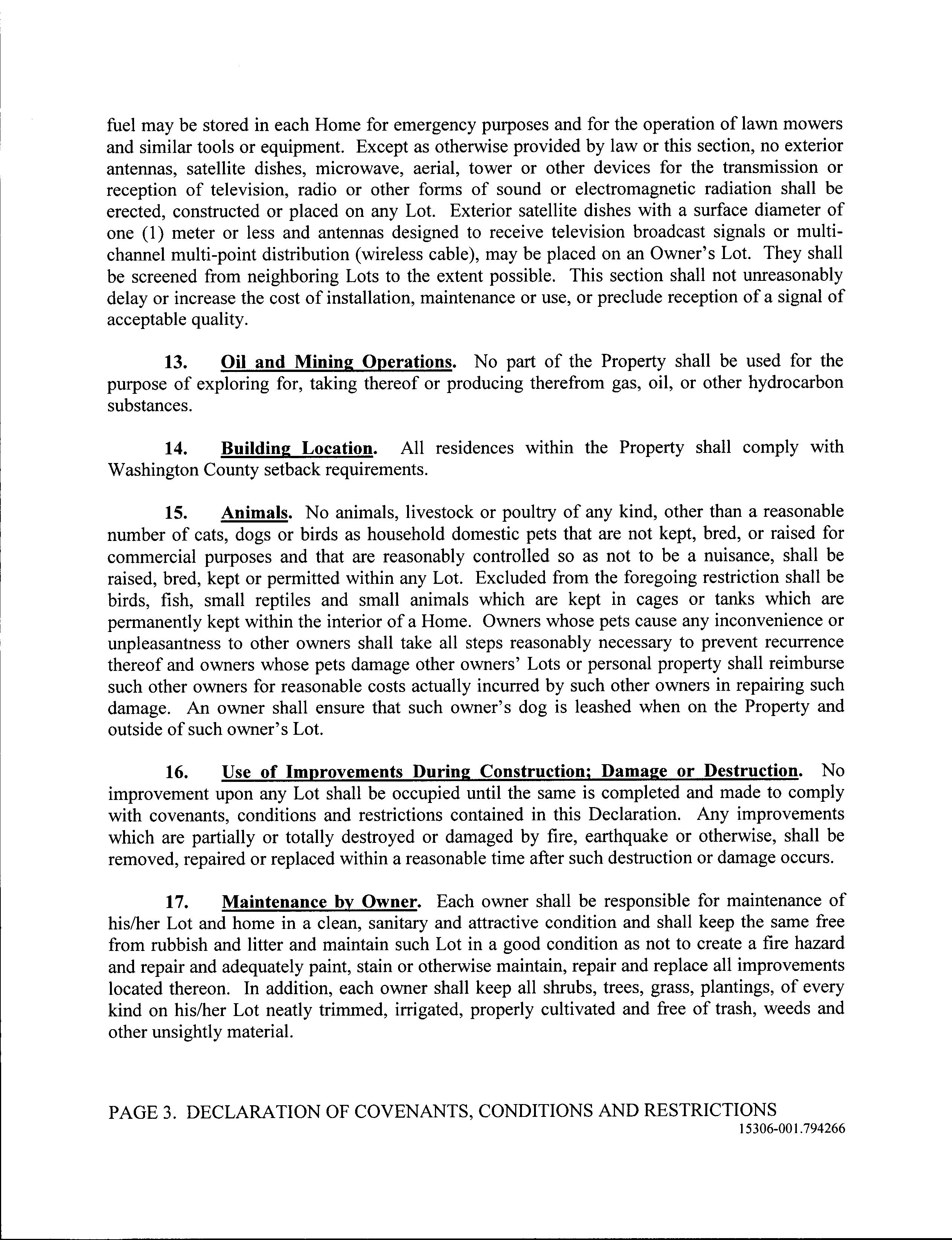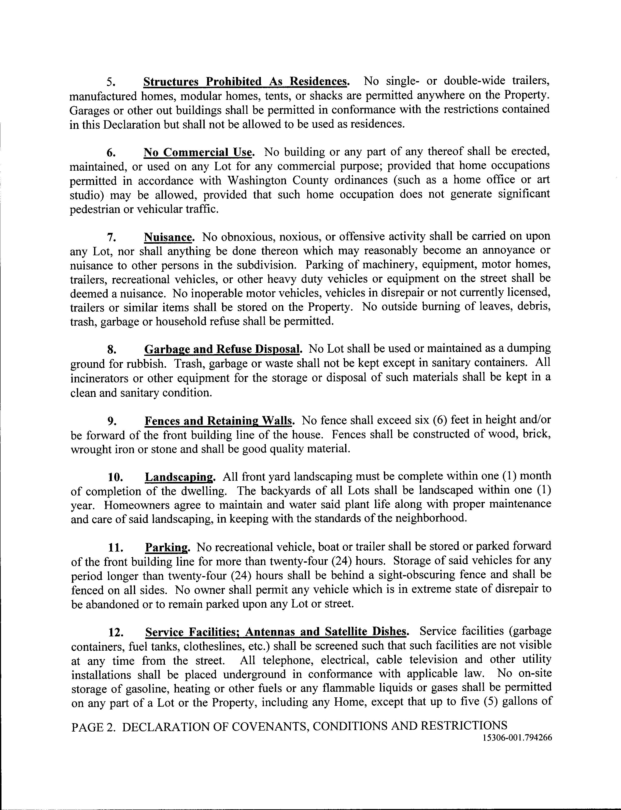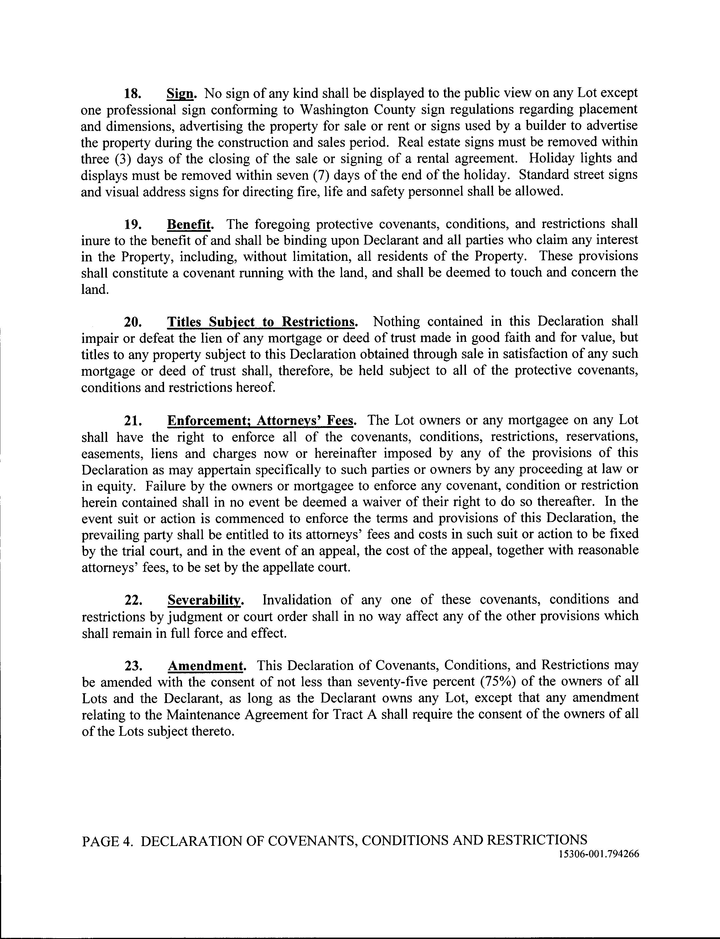 COVENANTS, CONDITIONS &