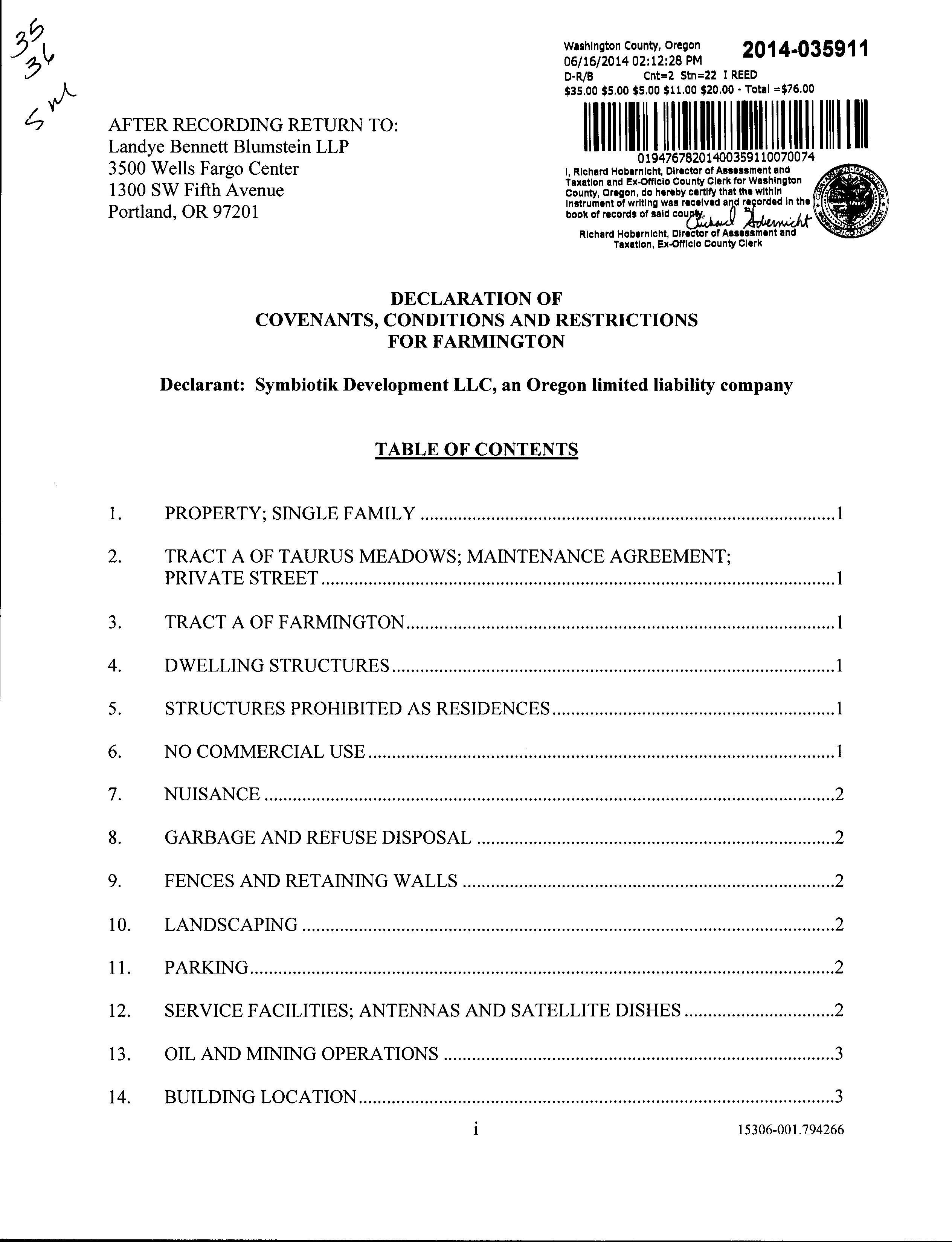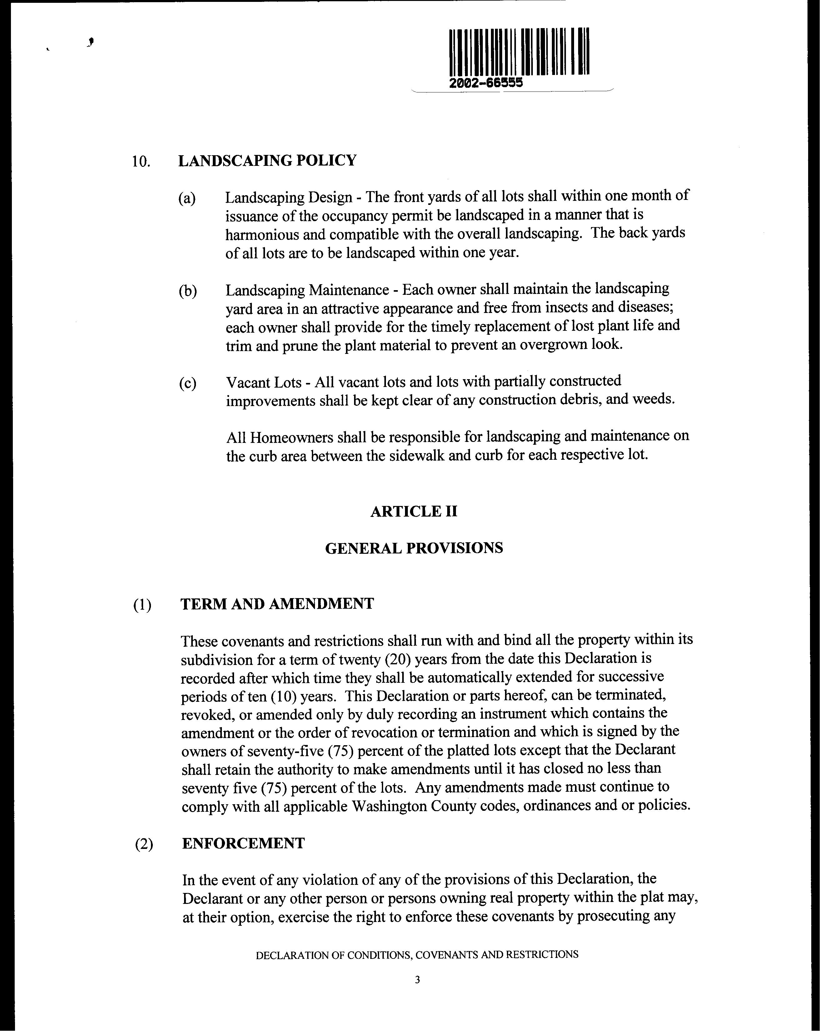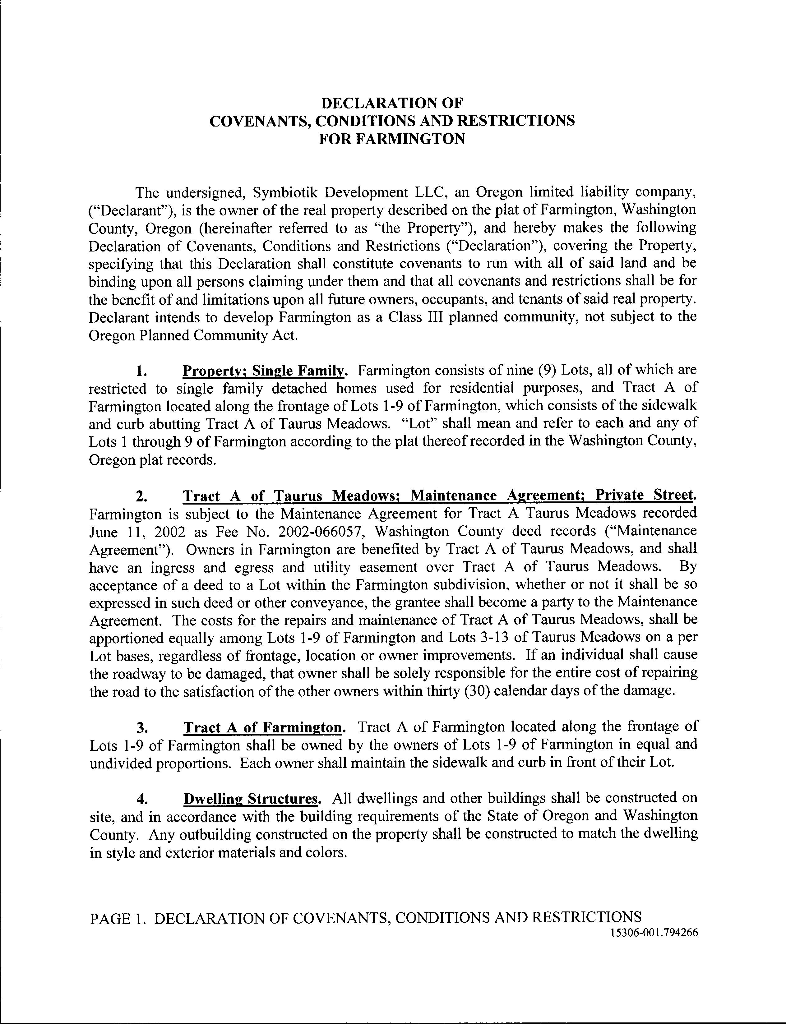 COVENANTS, CONDITIONS &
