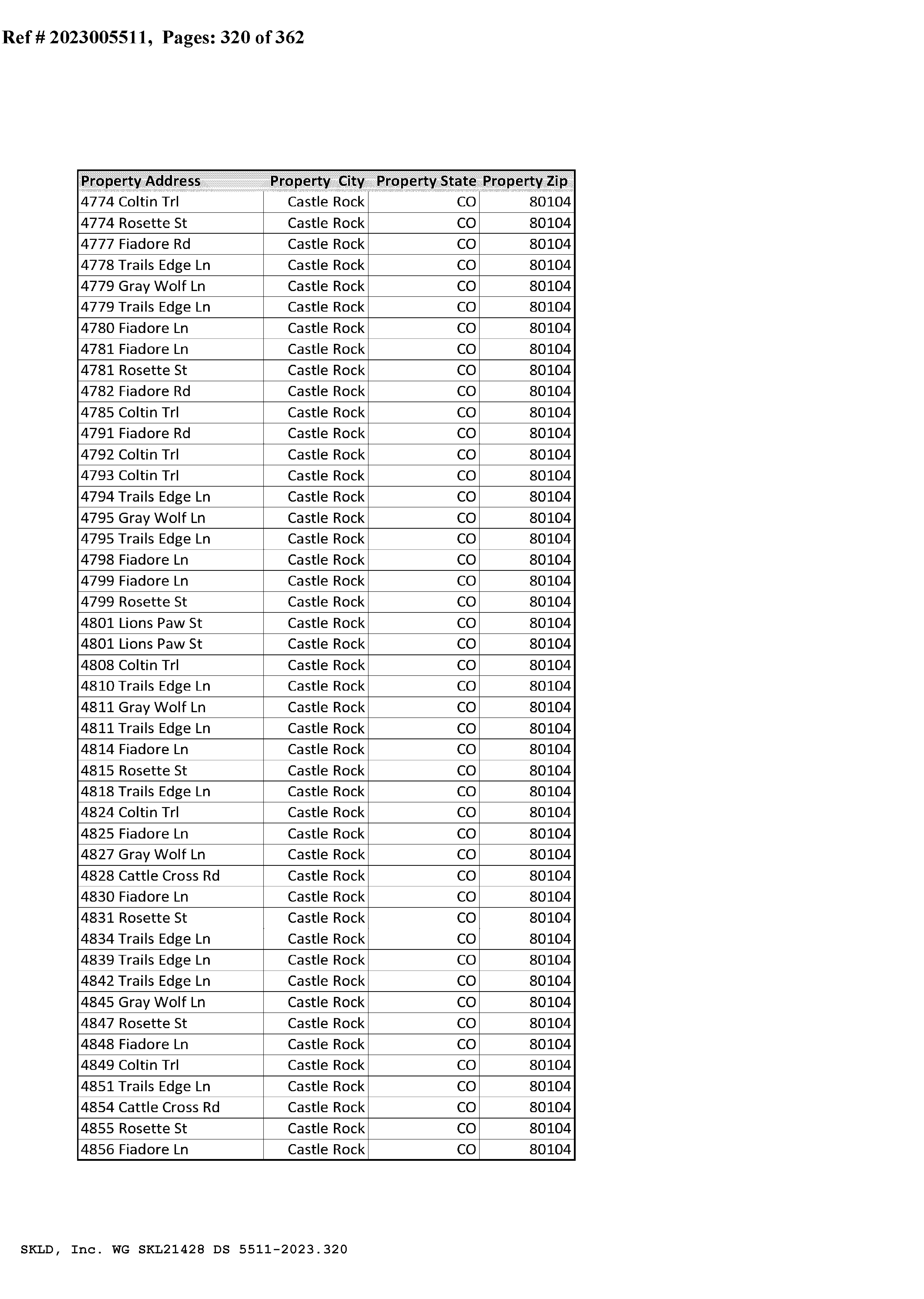 Mail Address: 3008 MOUNTAIN SKY DR CASTLE ROCK CO 80104