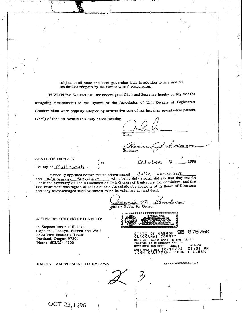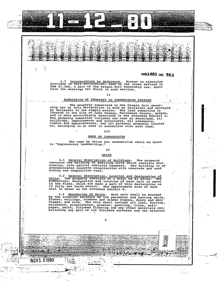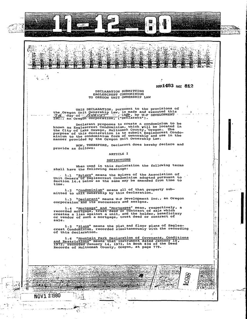 Eaglescrest Condominium - CC&R