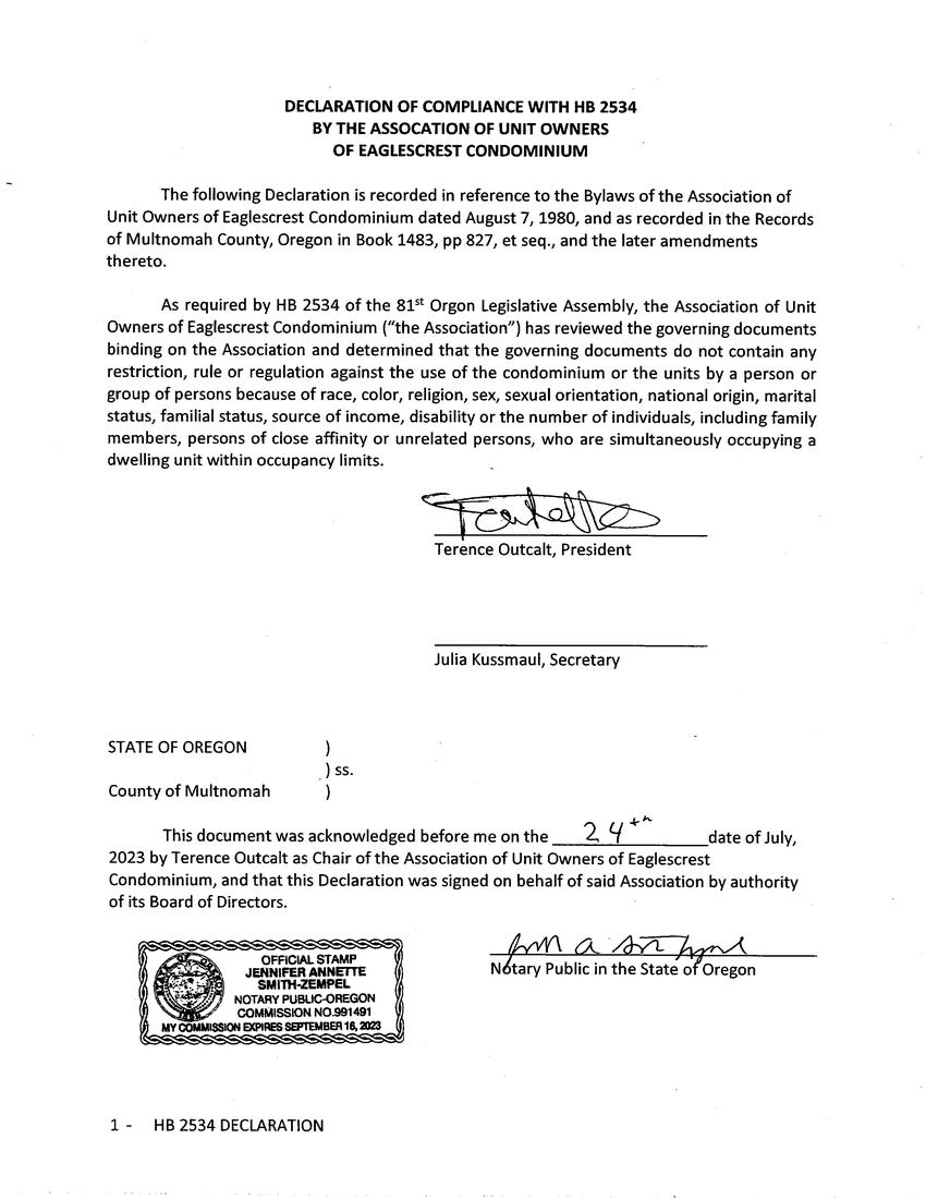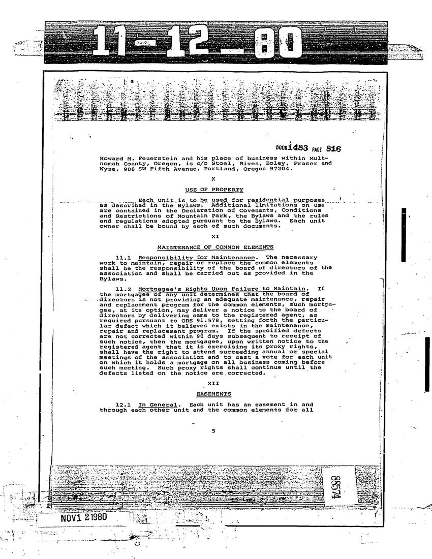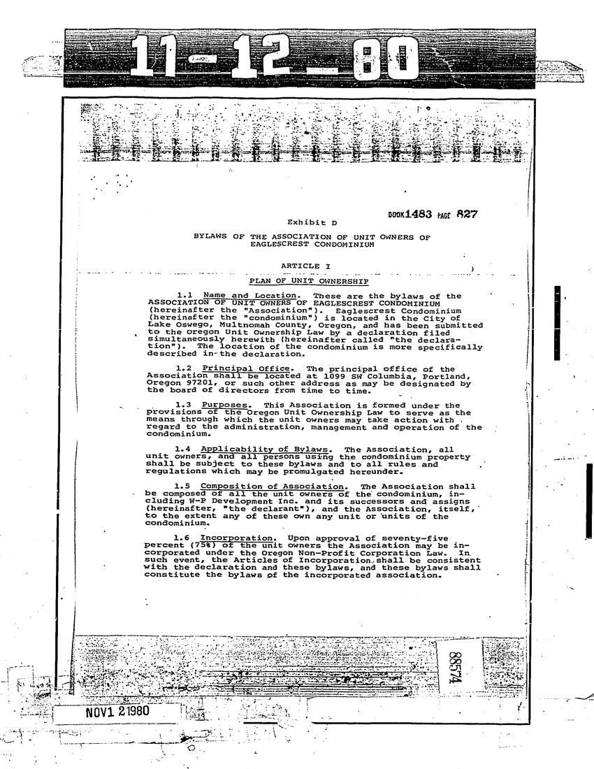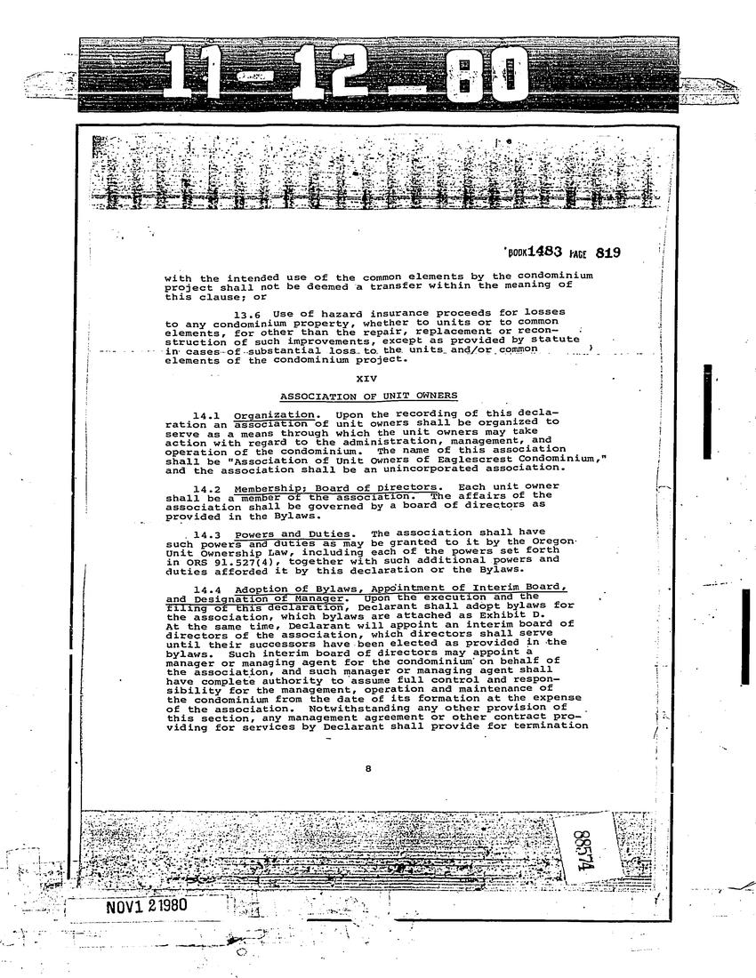 Eaglescrest Condominium - CC&R