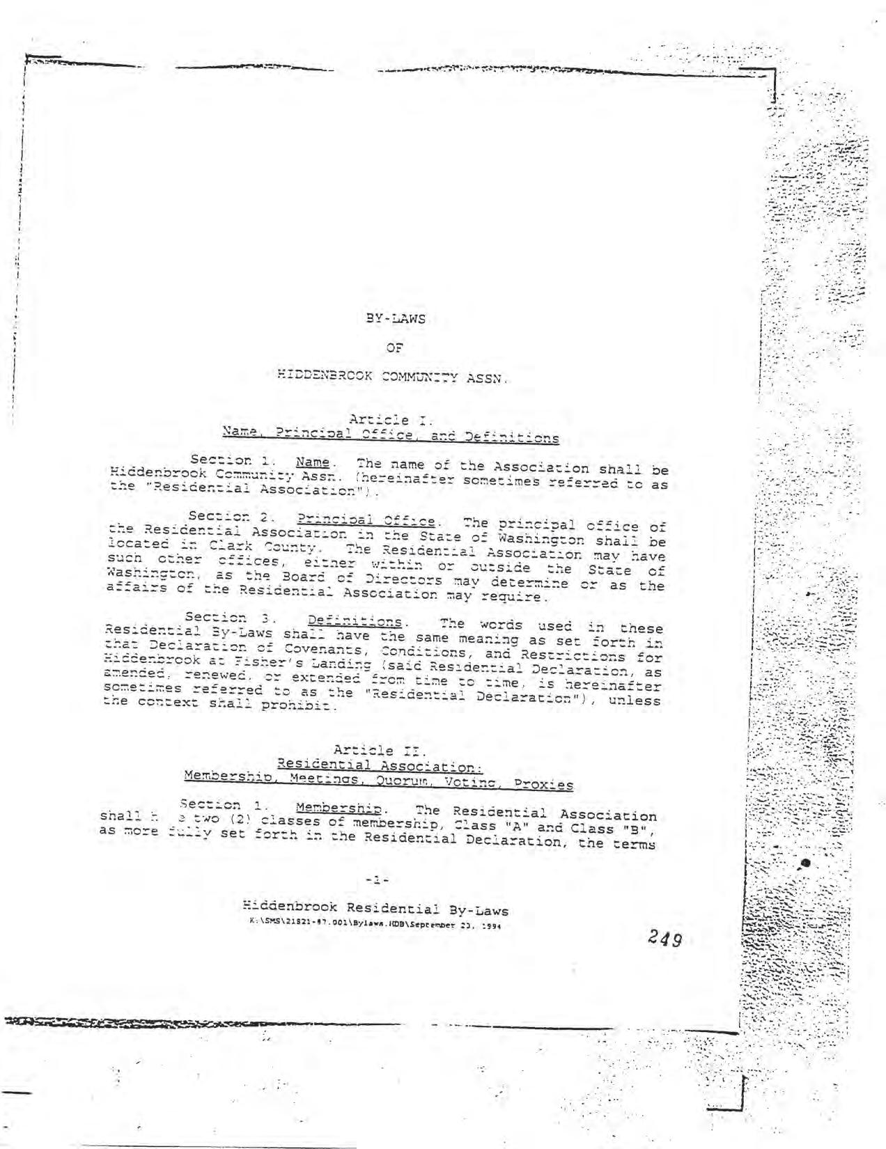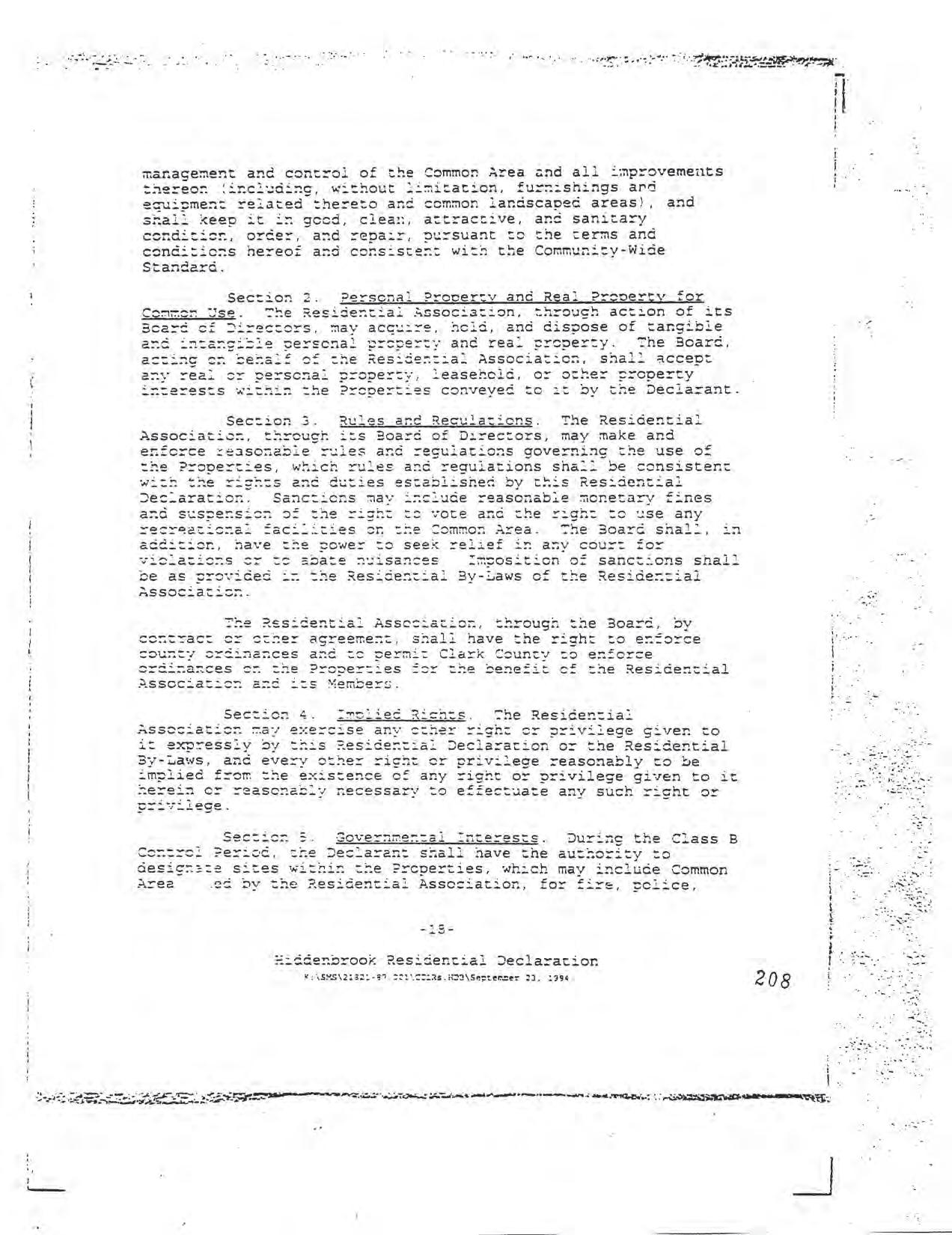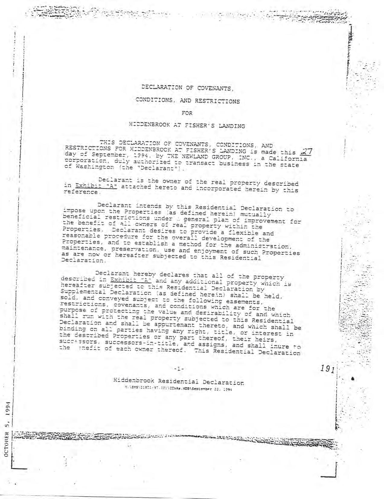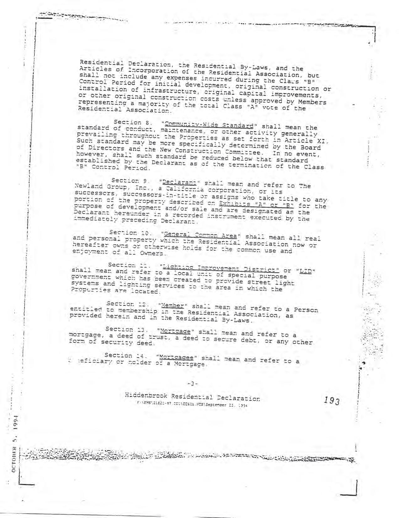 Hiddenbrook Area 3 Phase 1 - CCR's