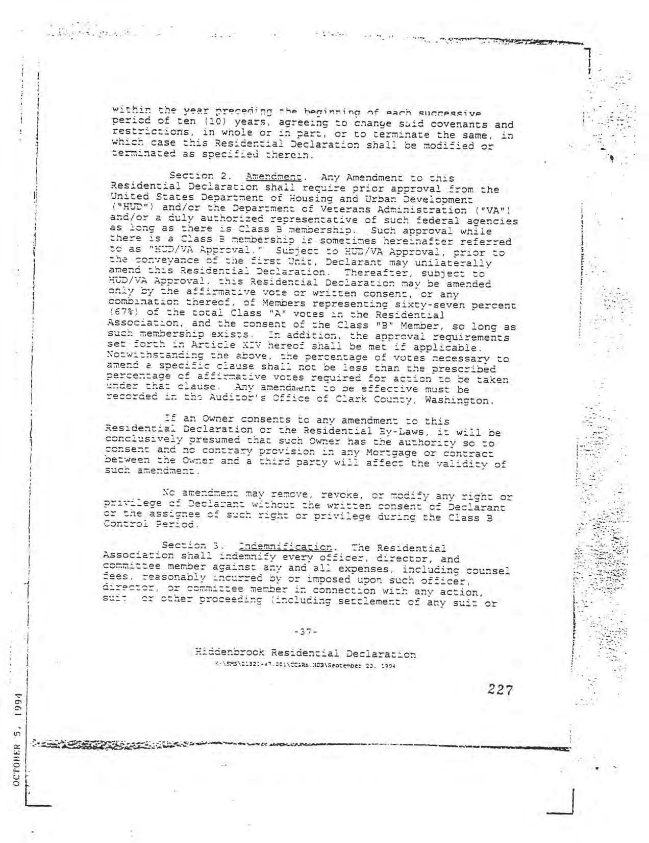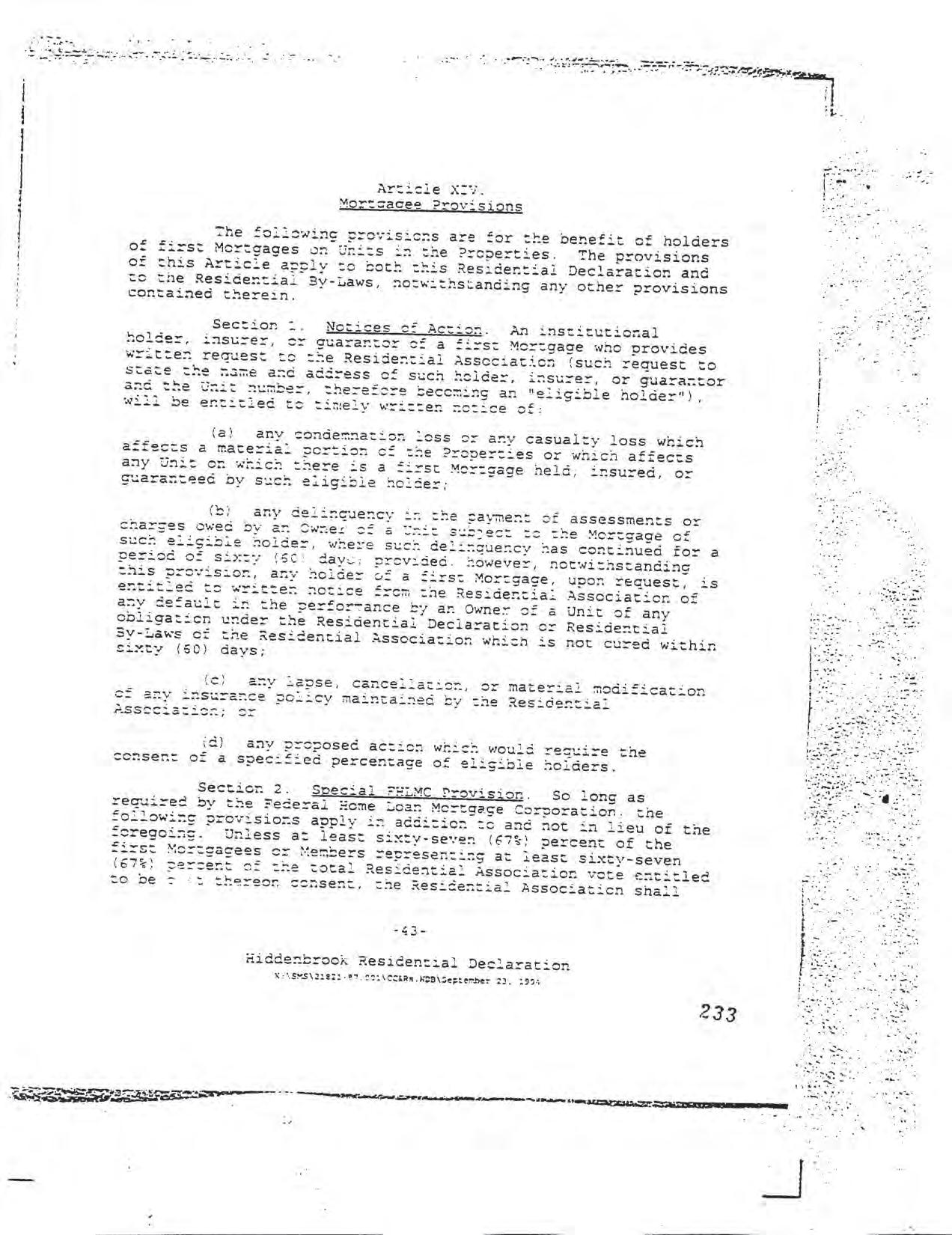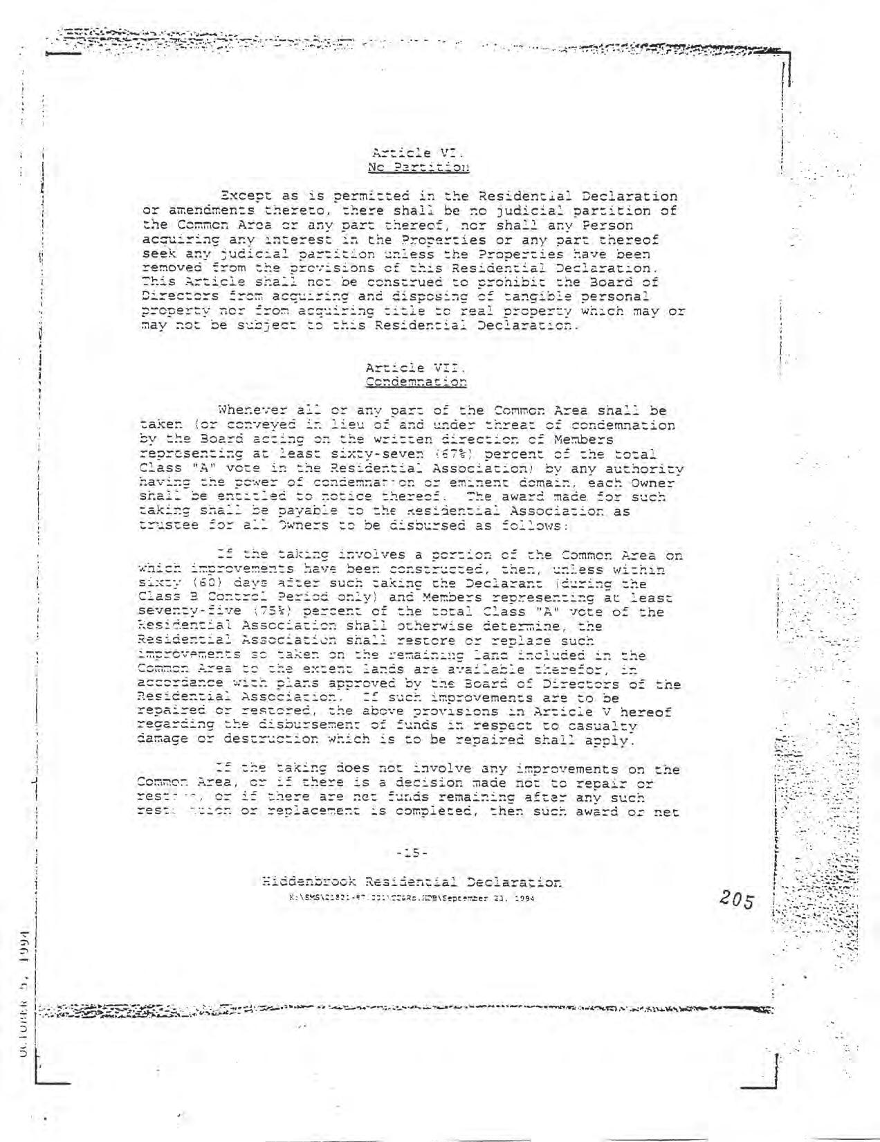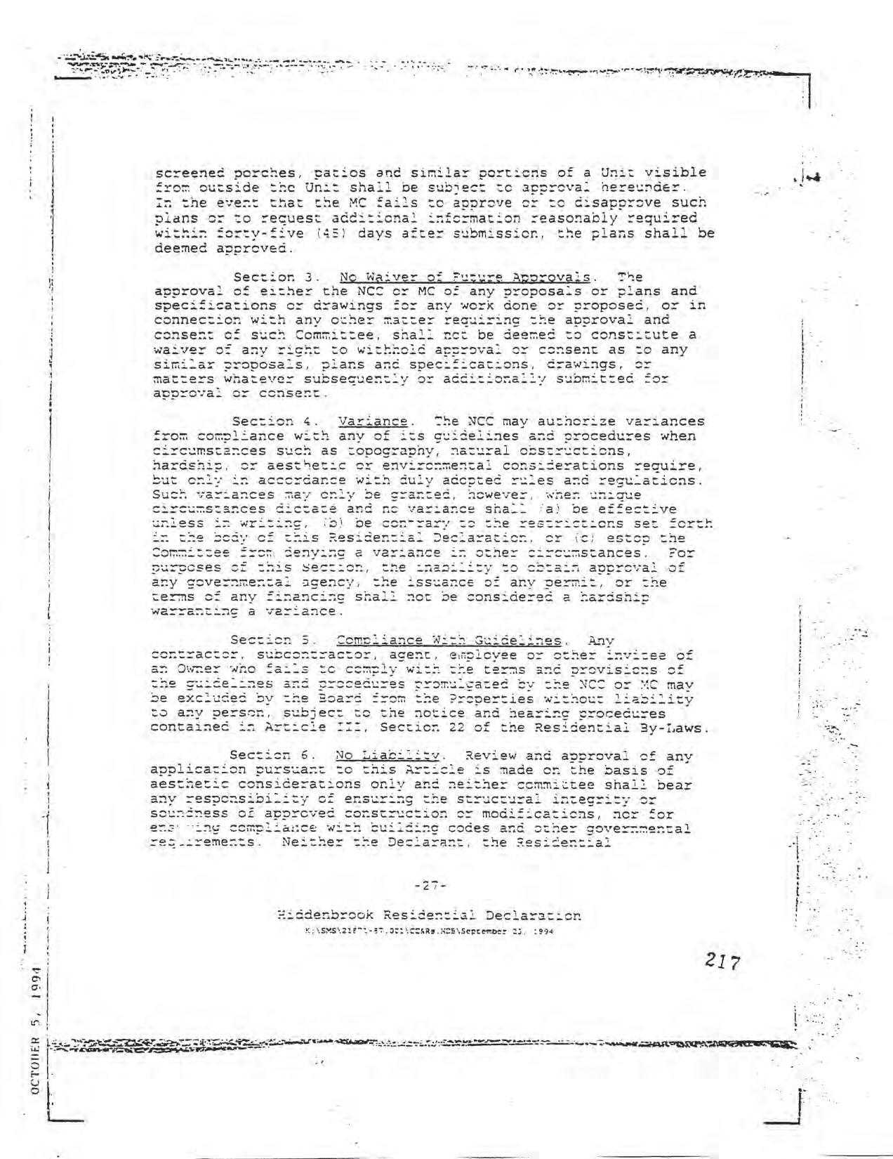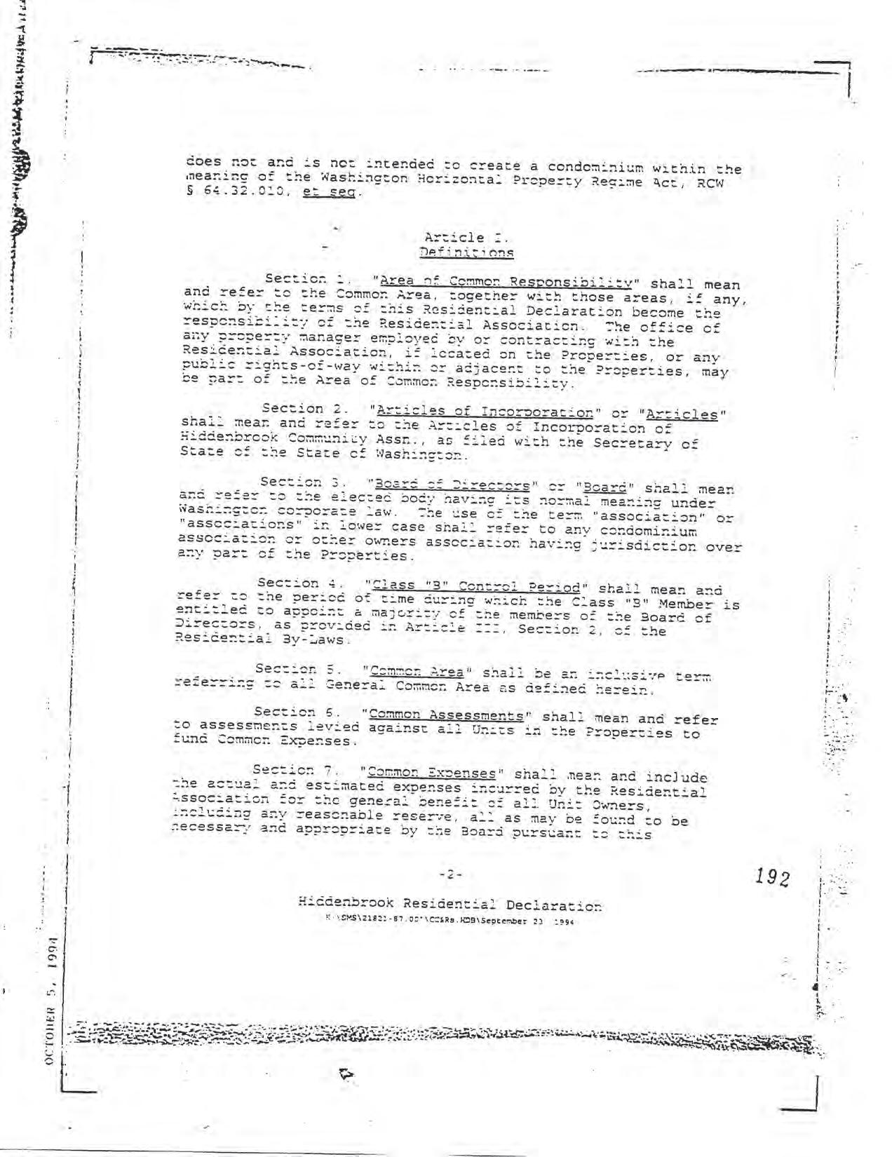 Hiddenbrook Area 3 Phase 1 - CCR's