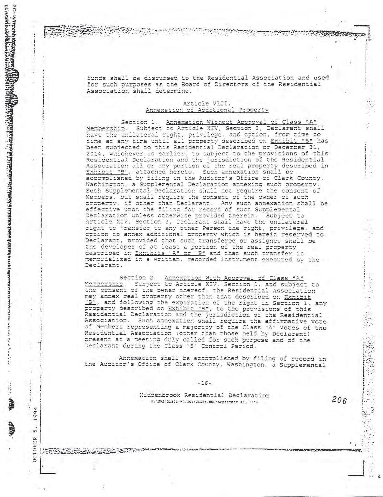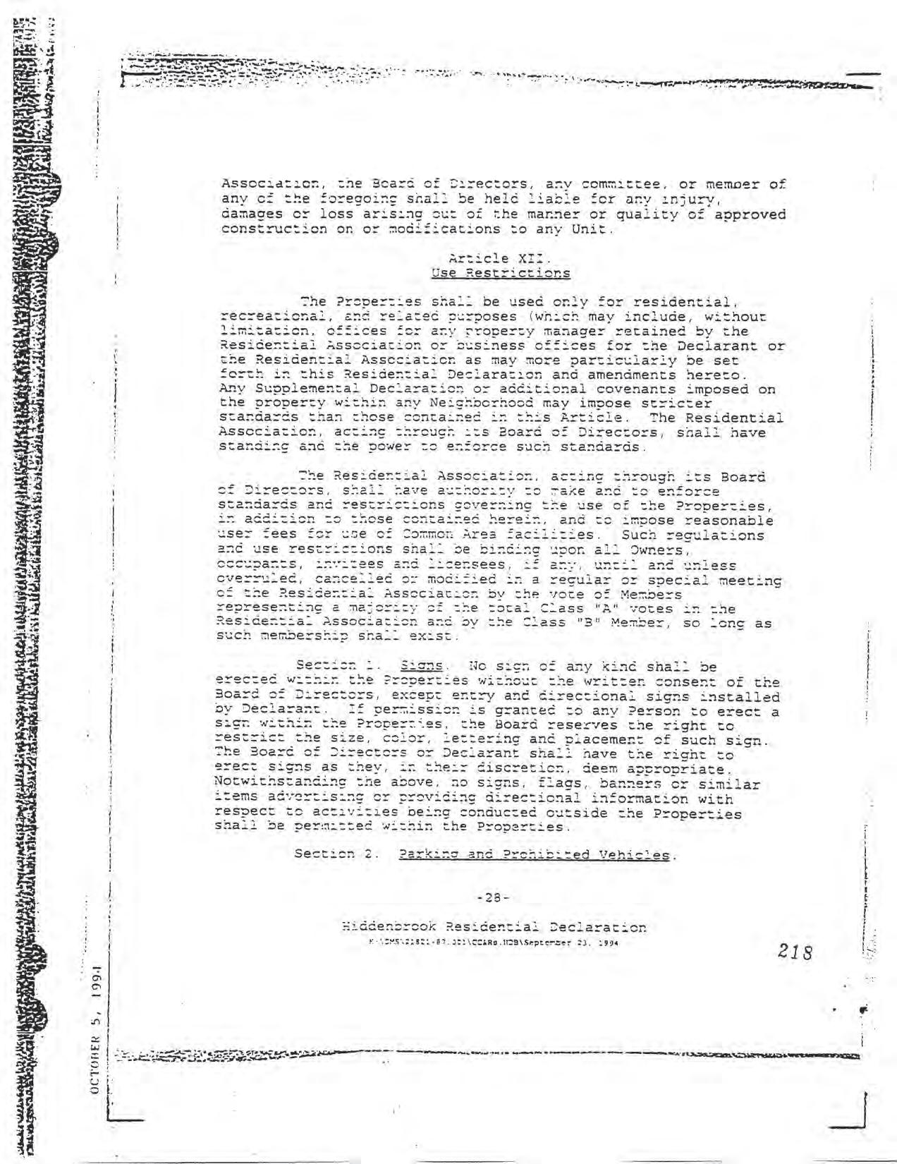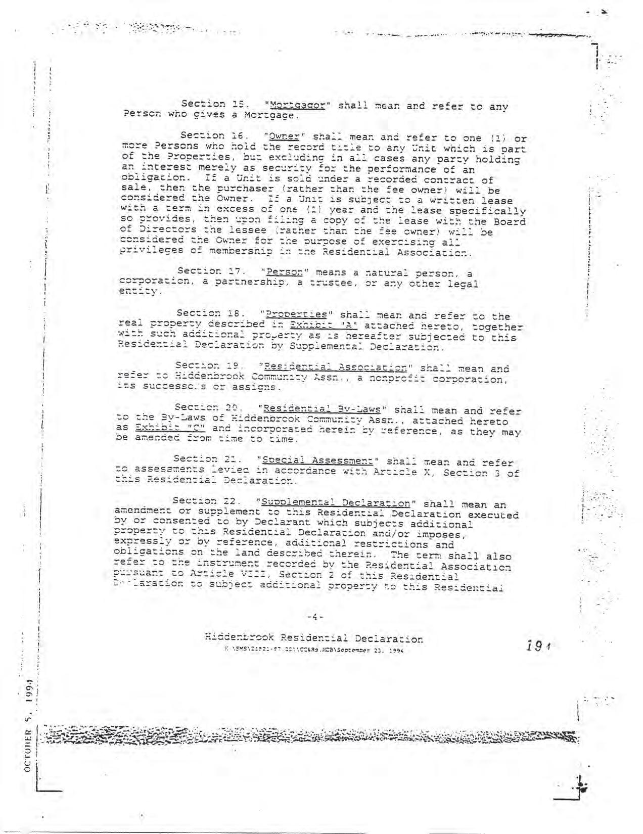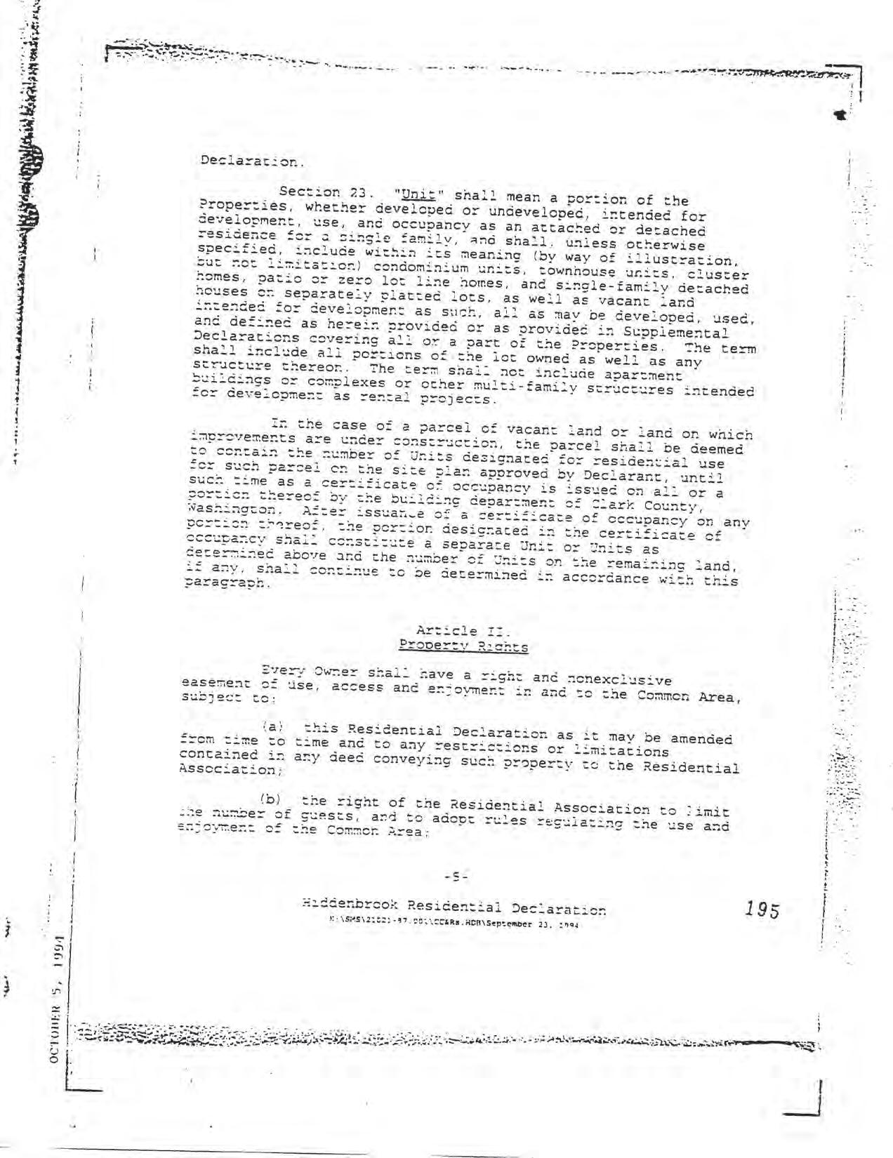 Hiddenbrook Area 3 Phase 1 - CCR's