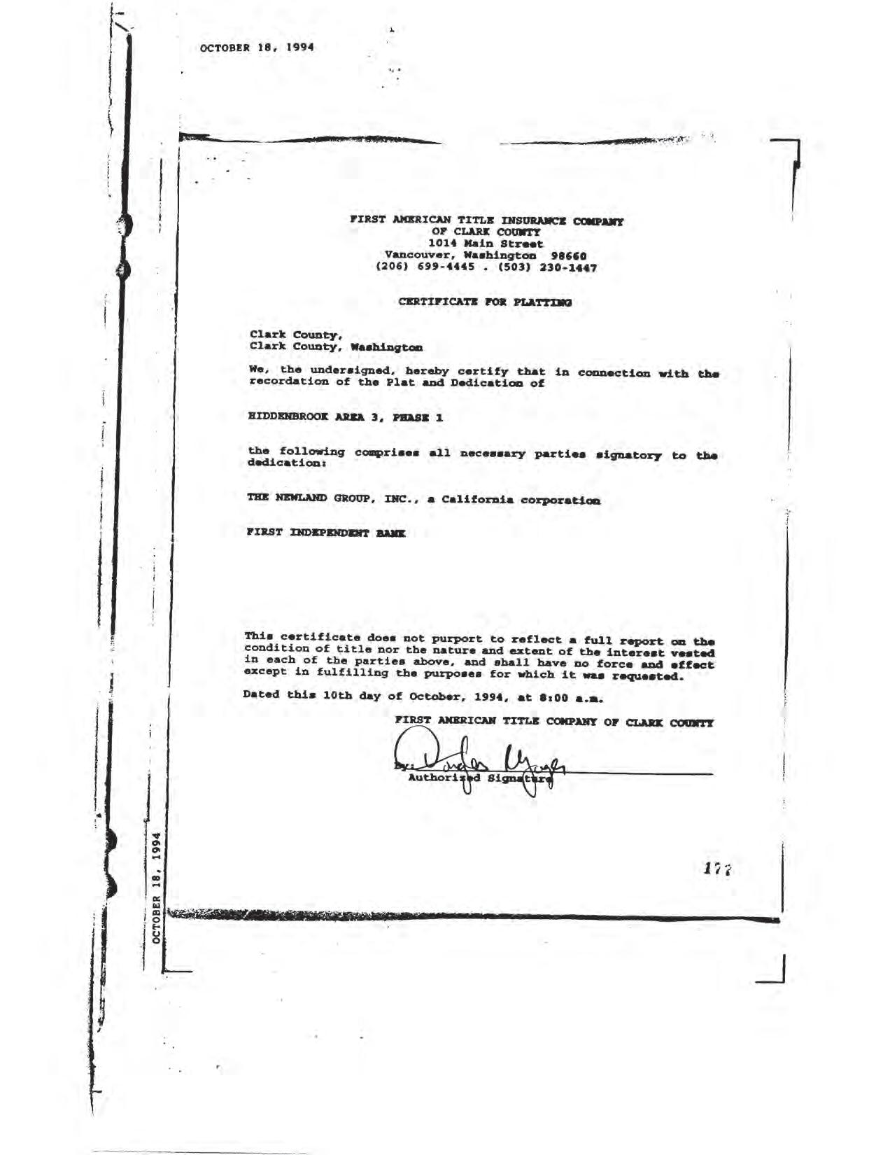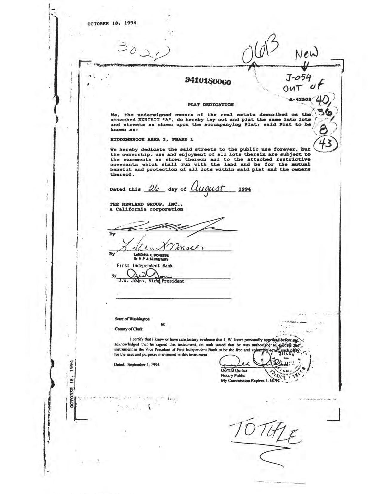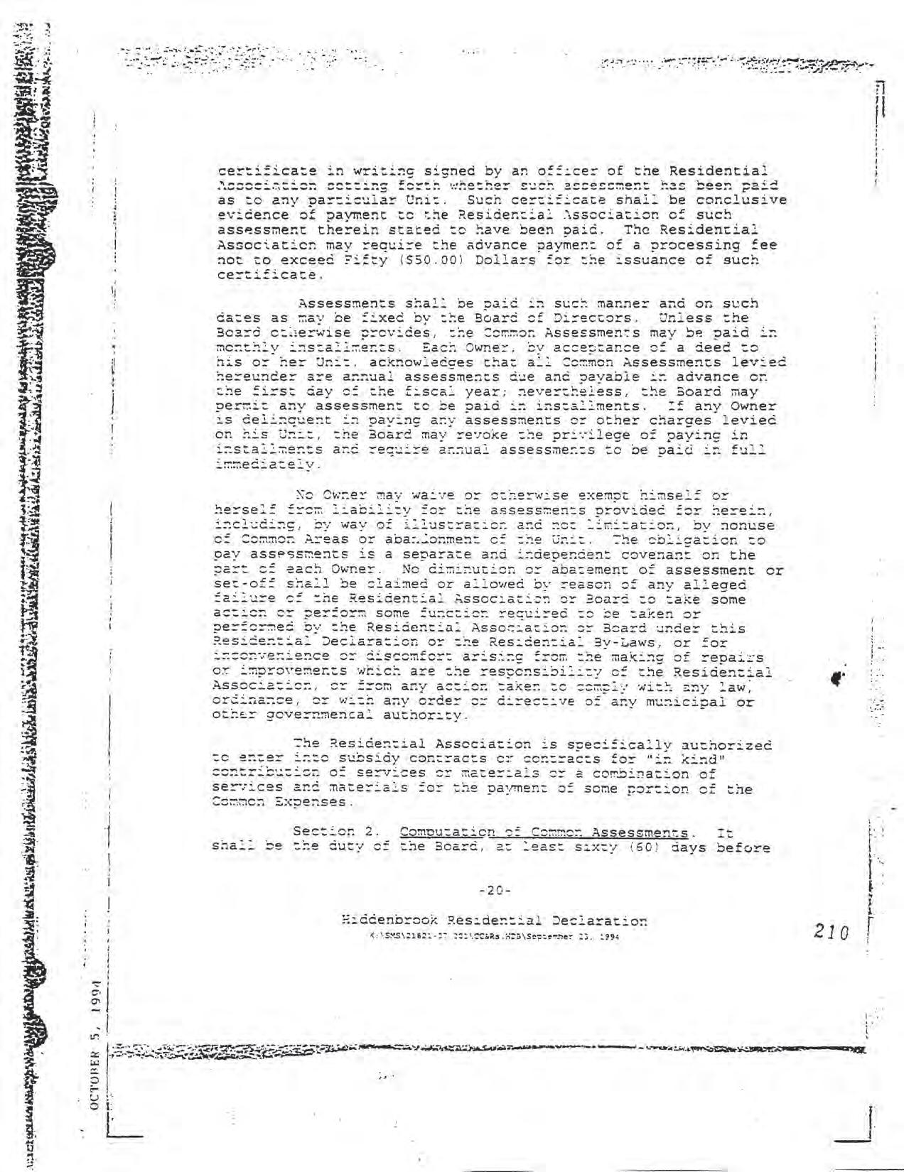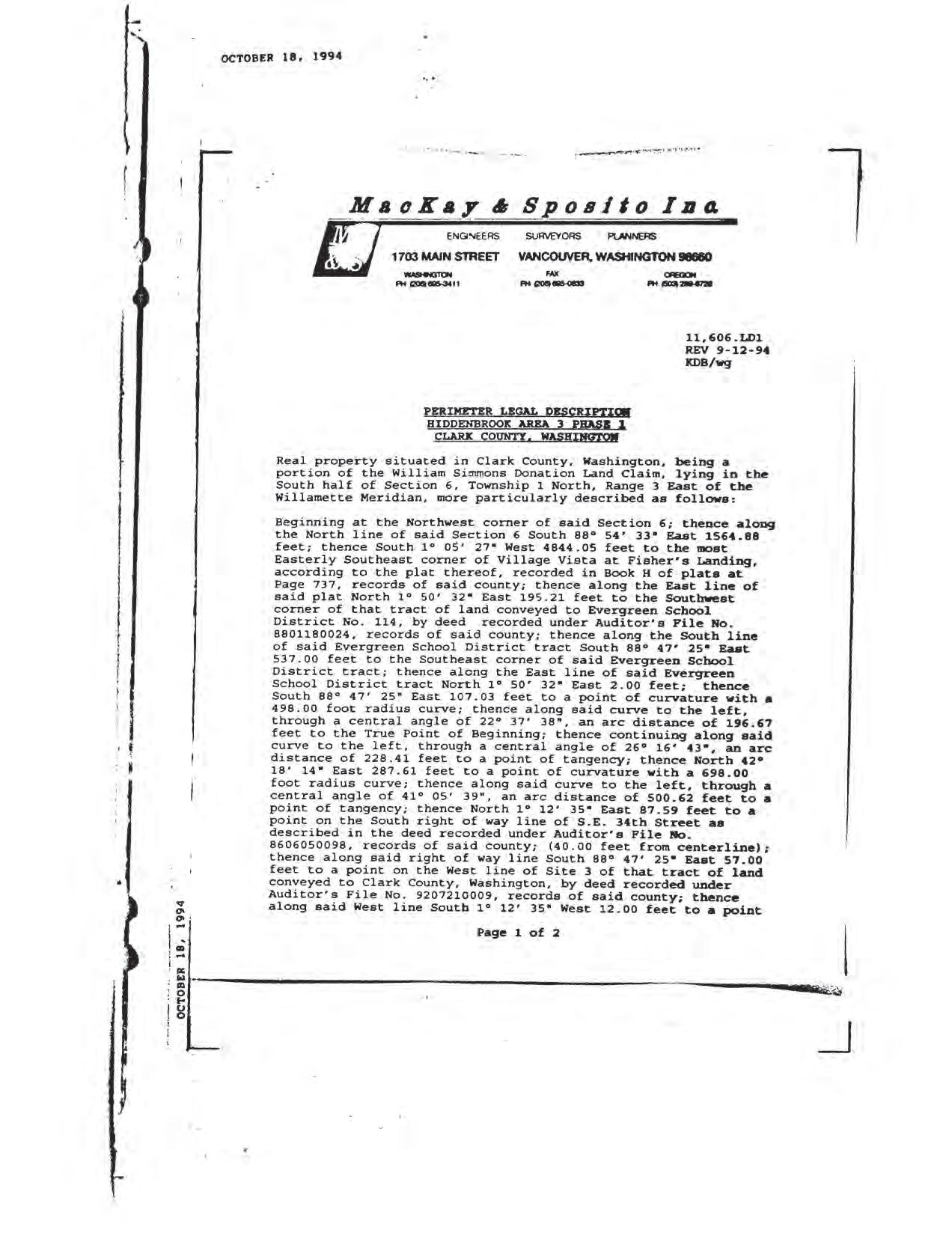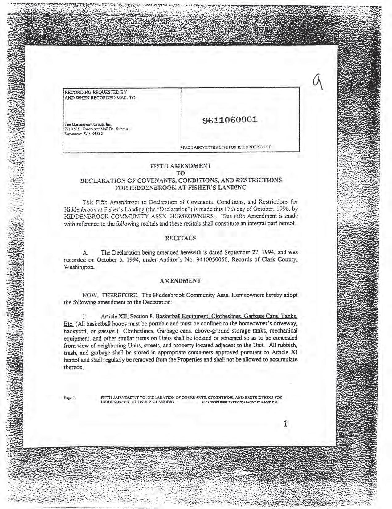 Hiddenbrook Area 3 Phase 1 - CCR's