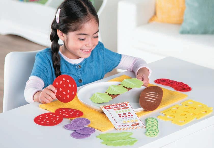 Making Acorn Soup is as easy as 1-2-3! The round box bottom doubles as a bowl, which contains wooden ingredients and a sturdy wooden spoon for mixing and stirring. Simple recipe cards teach toddlers to identify the ingredients and count as they cook. Mix, stir, eat and play together!