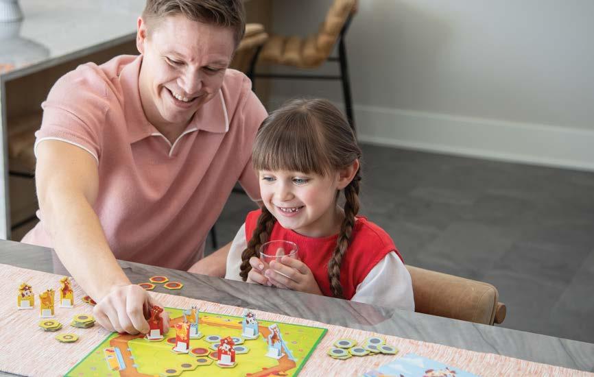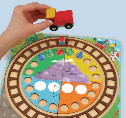 All aboard for cooperative excitement, as players build a bright, busy train, learning to take turns, work together and enjoy the journey as one.