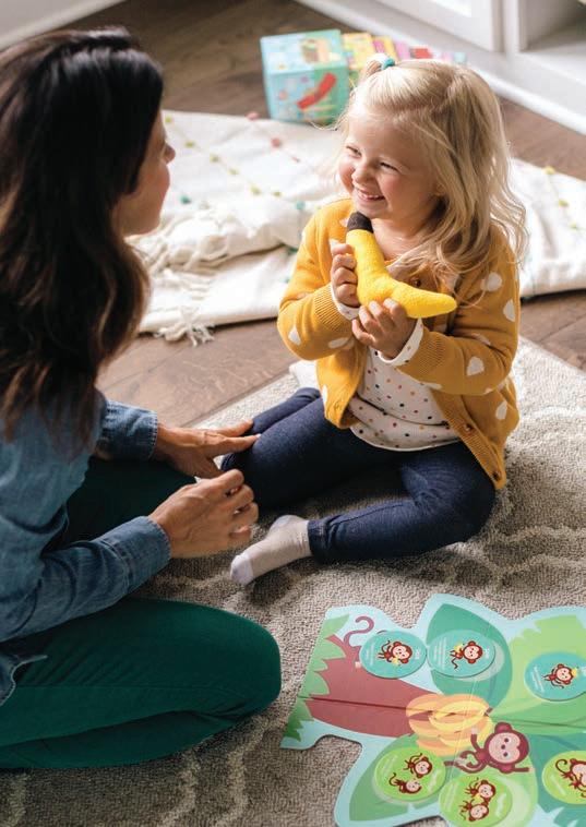 Get ready to move! Monkey Around contains 40 cards that prompt players to do movements together—from hugs to high fives to simple skills like balancing, hopping and marching. Included in the game is a bean bag banana that adds to the fun and learning.
