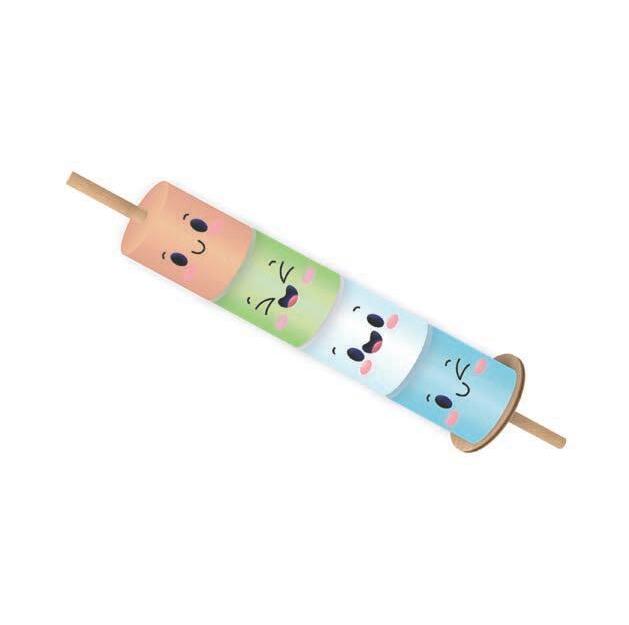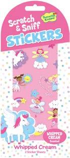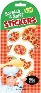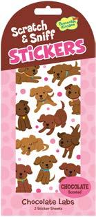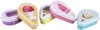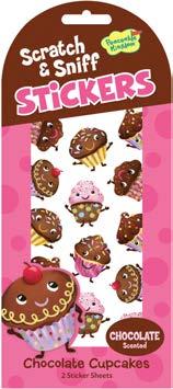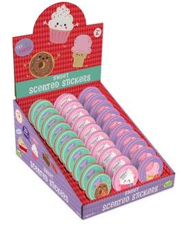 •30 tins with 10 of each scented sticker: vanilla, strawberry and chocolate