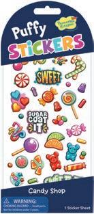 1 sheet permanent puffy stickers • 4"w x 9"h peggable pack • Minimum 12 per design