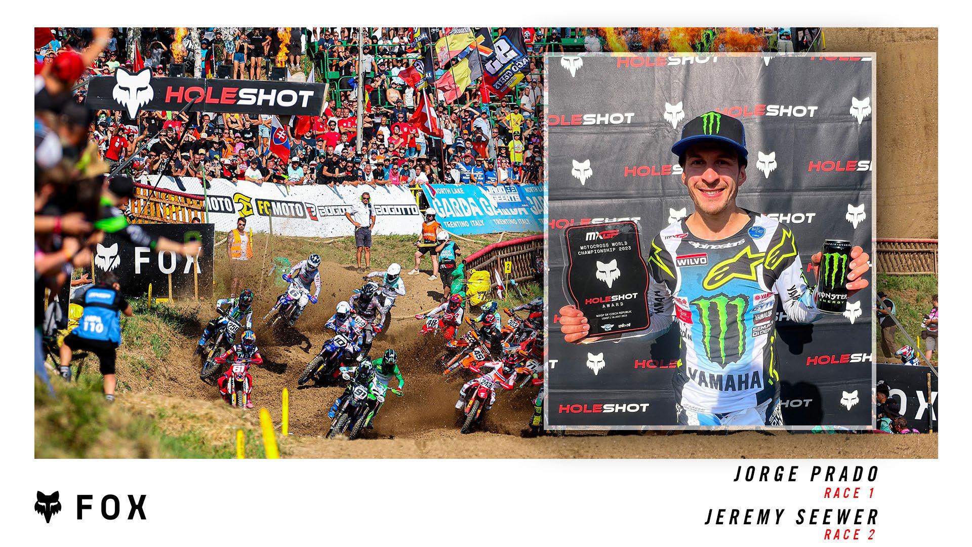 FIVE GRAND PRIX. THAT’S ALL THERE IS LEFT FOR MXGP AND MX2 RIDERS TO TRY TO MAKE A PLACE ON ONE OF THE PODIUM STEPS IN EACH CATEGORY... BUT ALSO TO TRY TO BRING HOME THE REWARD FOR THE FASTEST RIDER FROM THE START. BECAUSE THE FOX HOLESHOT CONTEST IS STILL FAR FROM HAVING DELIVERED ITS VERDICT. THE SUSPENSE THEREFORE REMAINS.