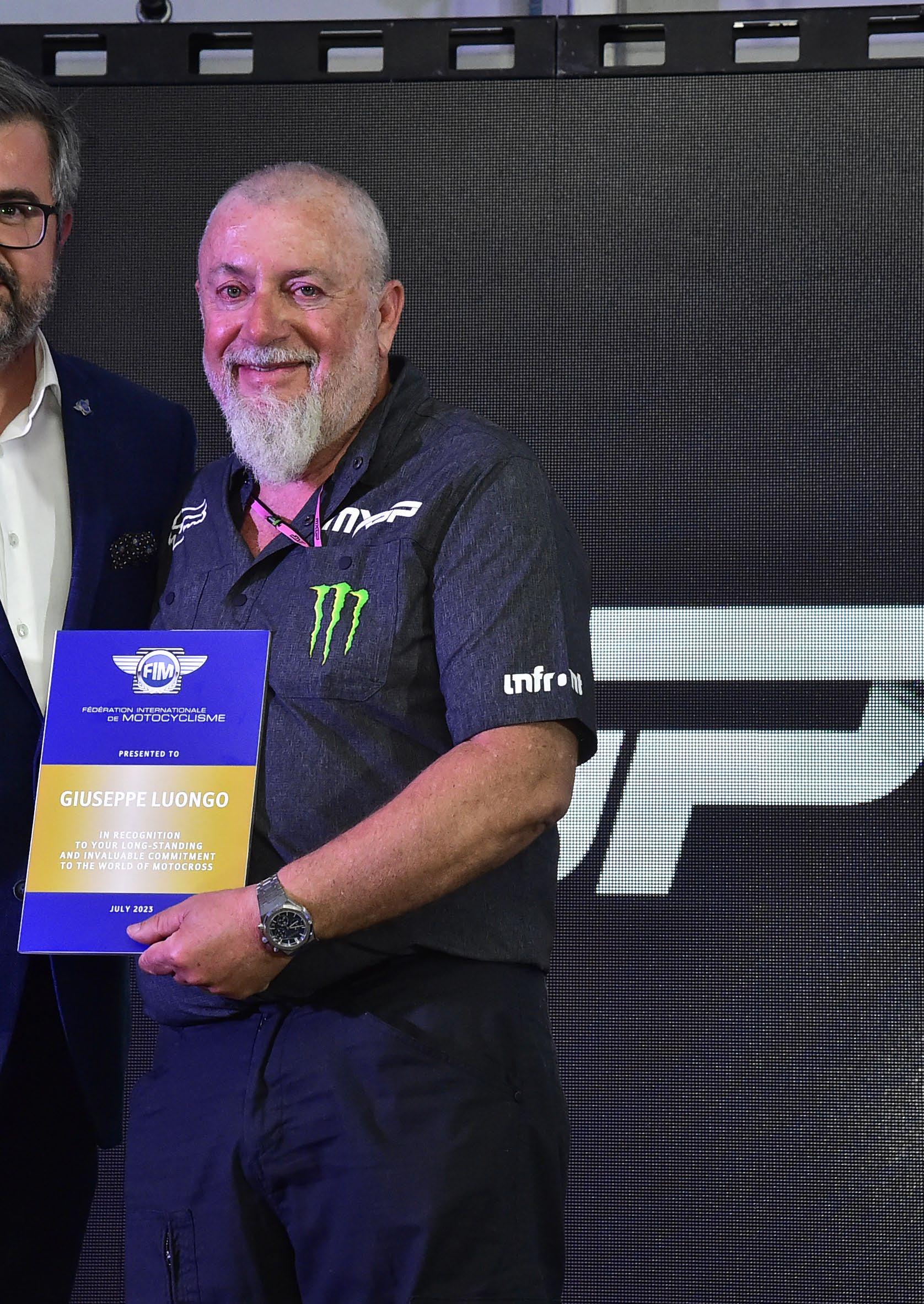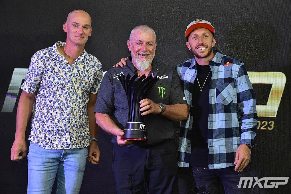 3 Legends Stefan Everts and Antonio Cairoli gifted Giuseppe Luongo a replica of the MXGP trophy for the 40th Anniversary celebration.