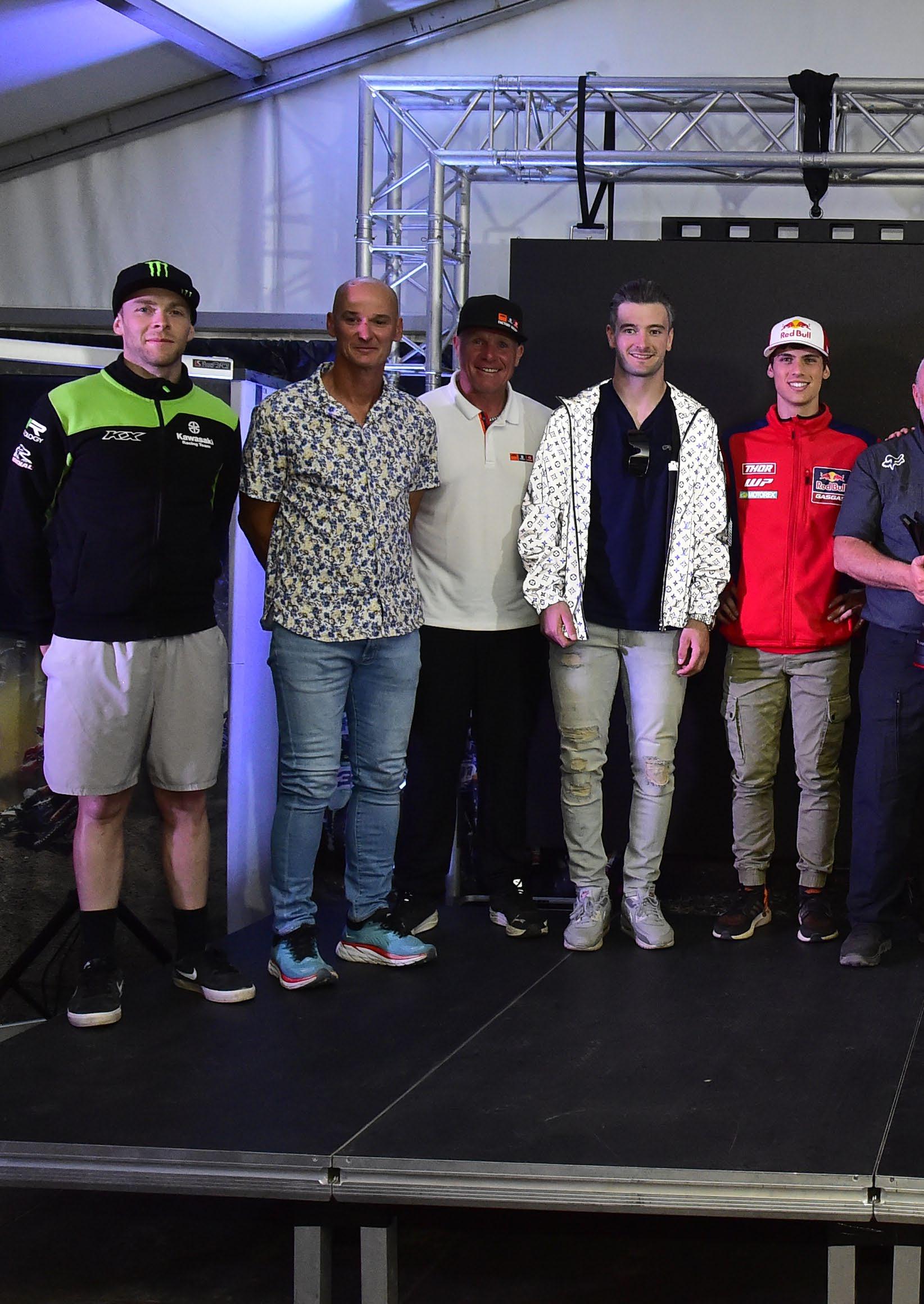 1 Celebration of the 40th Anniversary of the promotion of the Motocross World Champioship in Lommel with Giuseppe Luongo and all the champions present. (Left to right) Romain Febvre, Stefan Everts, Joel Smets, Jeffrey Herlings, Jorge Prado, Giuseppe Luongo, Antonio Cairoli, Tim Gajser, Jan Postema, Harry Everts, Corrado Maddii, Michele Rinaldi, Jacky Vimond