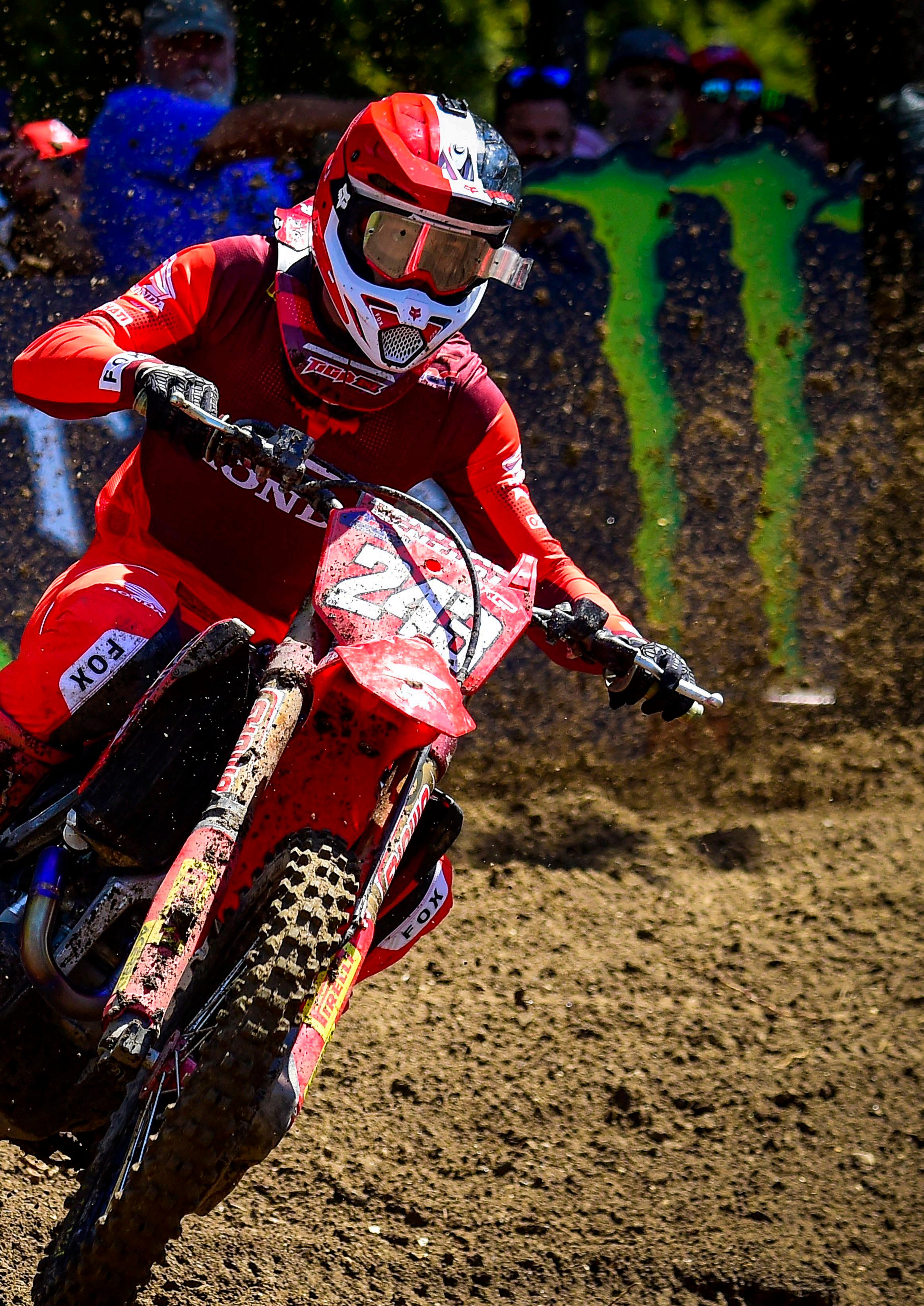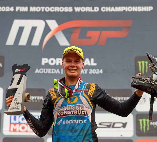 3 Honda is a happy manufacturer in May 2024. After 6 years, Pauls Jonass came back on top of the podium and has clinched his 12th GP victory in very tough conditions at Agueda, his first victory in the MXGP class! And Tim Gajser is the new championship leader after the Monster Energy MXGP of France.