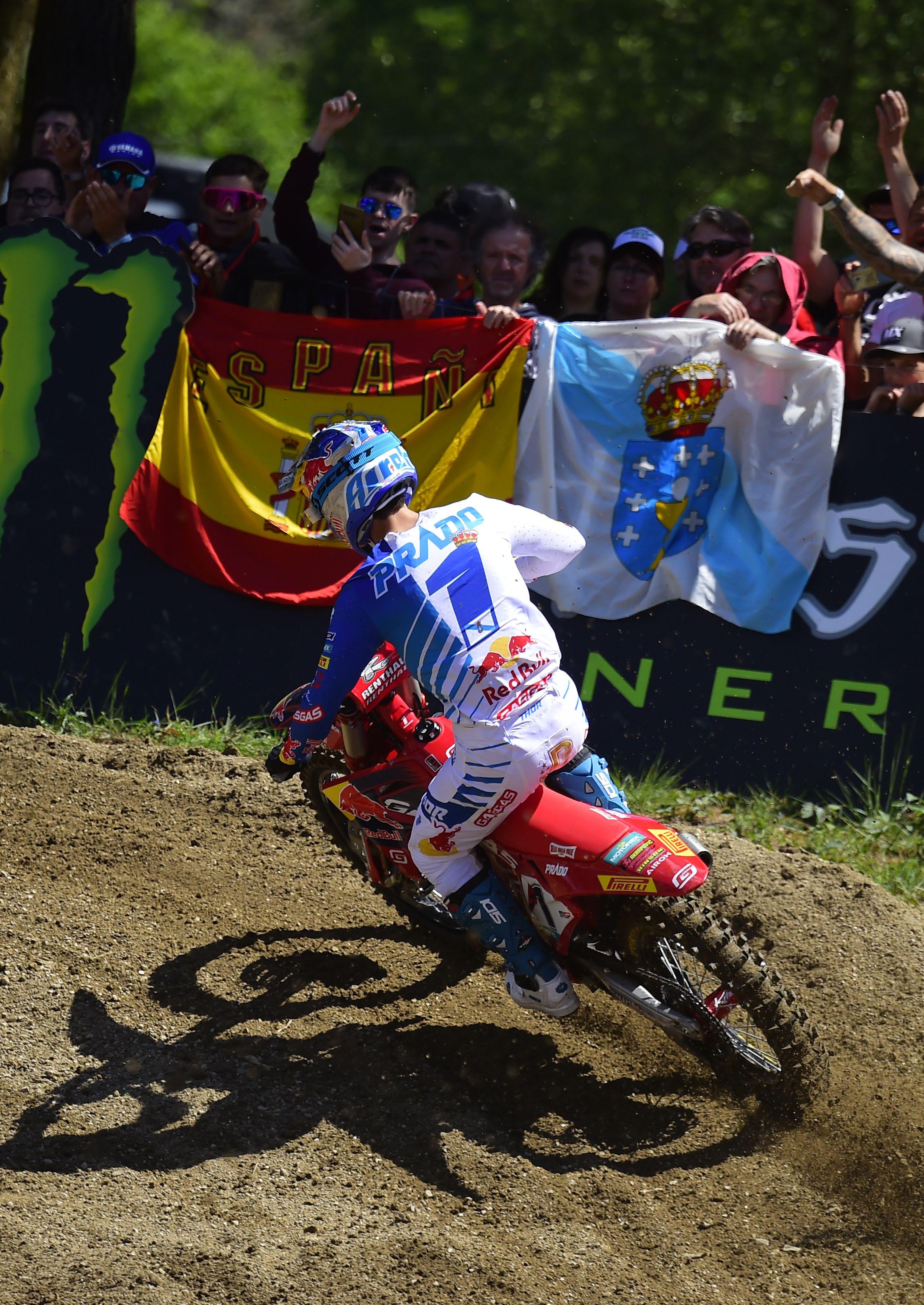After losing his Red Plate one week earlier in Portugal, Jorge Prado needed to bounce back, especially at his home GP, on a circuit named after him at the end of 2022. First up was the RAM Qualifying Race, where Prado came from 3rd to 1st, passing both Herlings and Gajser on his way to the win. In Race One, the home boy led all nineteen laps to win by two seconds over Romain Febvre, as Gajser fell early on from 3rd to 12th, before clawing his way back to 6th, which included another off-track excursion as he attempted a pass on Valentin Guillod. All of a sudden, the Slovenian’s lead had been reduced to just three points heading into Race Two.