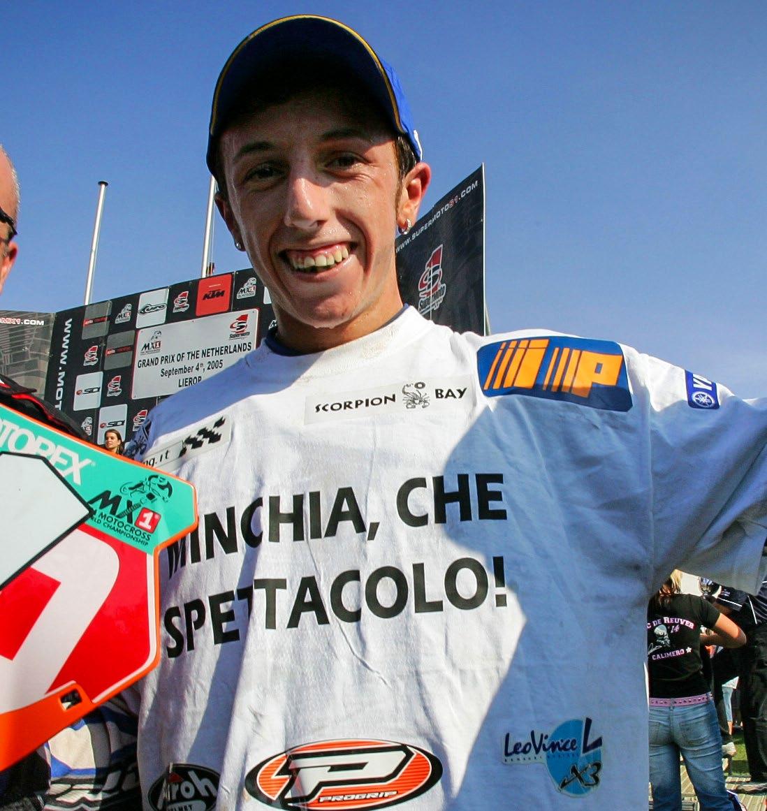 end of 2003. It would take 21 years before he raced a GP for any other team again! Injuries limited him to just the two MX2 world titles in his first five full seasons, but he was already 16th all-time with 24 GP victories, just three shy of the previous top Italian, Alessio Chiodi (who won a race at that Namur GP!). One of those wins had been achieved in the MX1 category, as Yamaha moved him up to try and help Josh Coppins in his world title bid, and the Italian took a shock win on debut at Donington Park in the UK!
