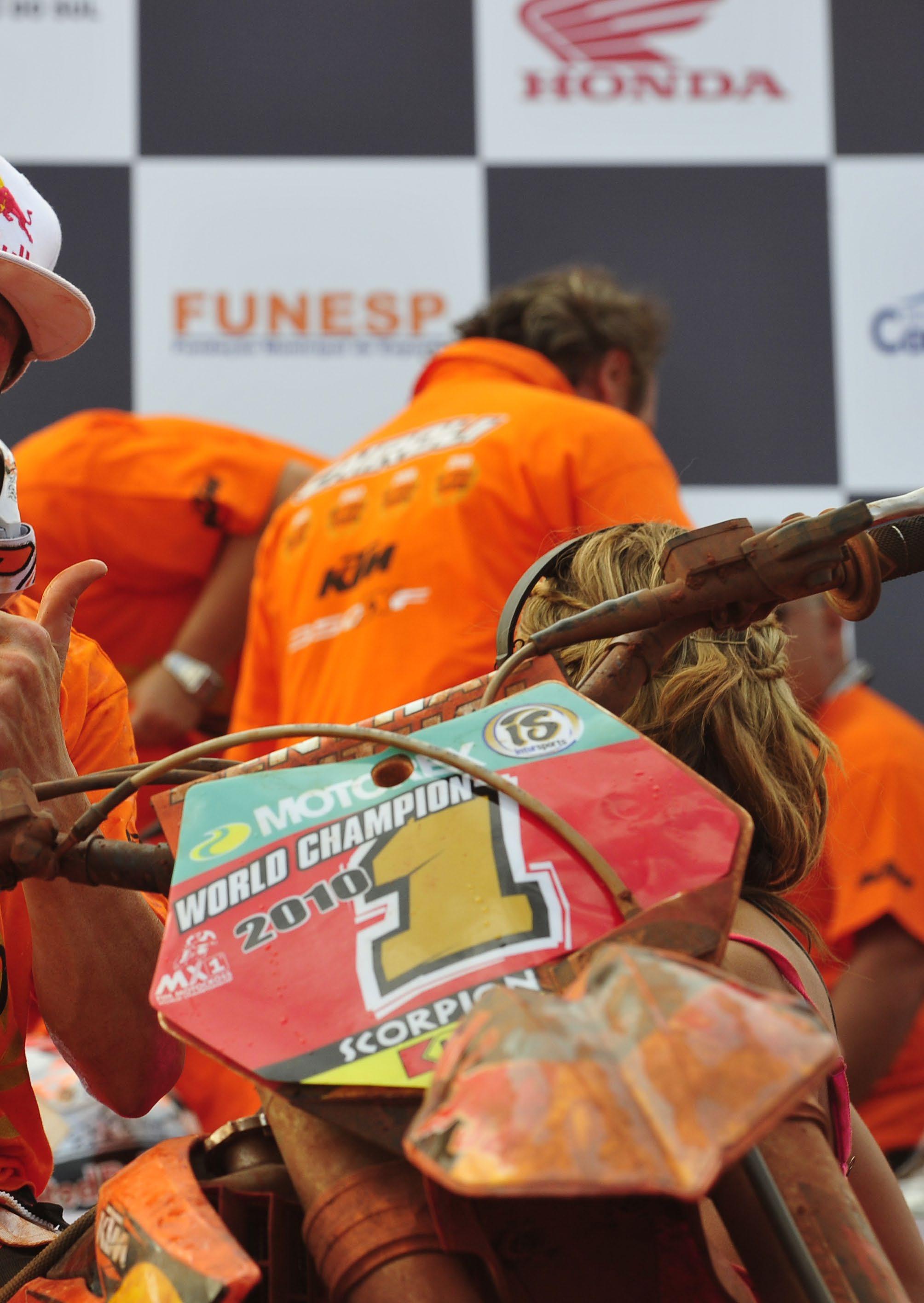 And in motocross it’s very, very difficult to win because there are so many types of challenges that you need to go through. First of all, you need to have the team around you, to be able to do that. You need to have the material to be able to do that and you need to have the rider to be able to do that, but you need to have the team and the material and the budget to be able to appeal the top rider to your team, and from there on, you go further and finally you have the package together, you have the rider, you have the material, you have the team and then you go in to work together and still, it’s so demanding because it’s such a long championship that you need to be fast, you need to be reliable, you need to take risks, but still you need to stay healthy all year, so I would say it’s a very demanding title to win and that’s why eventually it’s so rewarding to win it!