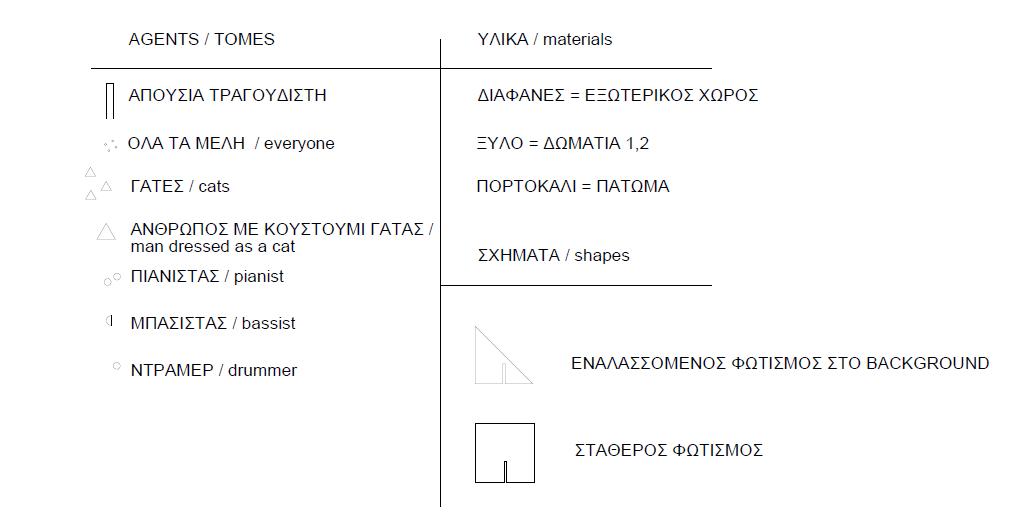 Structural [Trans]-Formations . ass.prof. VRONTISSI Maria Dep. of Architecture . Univ. of Thessaly . 2023 YPOMNHMA TOMES ΤΡΑΓΟΥΔΙΣΤΗ / everyone ΜΕ ΚΟΥΣΤΟΥΜΙ ΓΑΤΑΣ / pianist bassist drummer a cat ΥΛΙΚΑ / materials ΣΧΗΜΑTA / shapes ΔΙΑΦΑΝΕΣ = ΕΞΩΤΕΡΙΚΟΣ ΧΩΡΟΣ ΞΥΛΟ = ΔΩΜΑΤΙΑ 1,2 ΠΟΡΤΟΚΑΛΙ = ΠΑΤΩΜΑ ΕΝΑΛΑΣΣΟΜΕΝΟΣ ΦΩΤΙΣΜΟΣ ΣΤΟ BACKGROUND ΣΤΑΘΕΡΟΣ ΦΩΤΙΣΜΟΣ