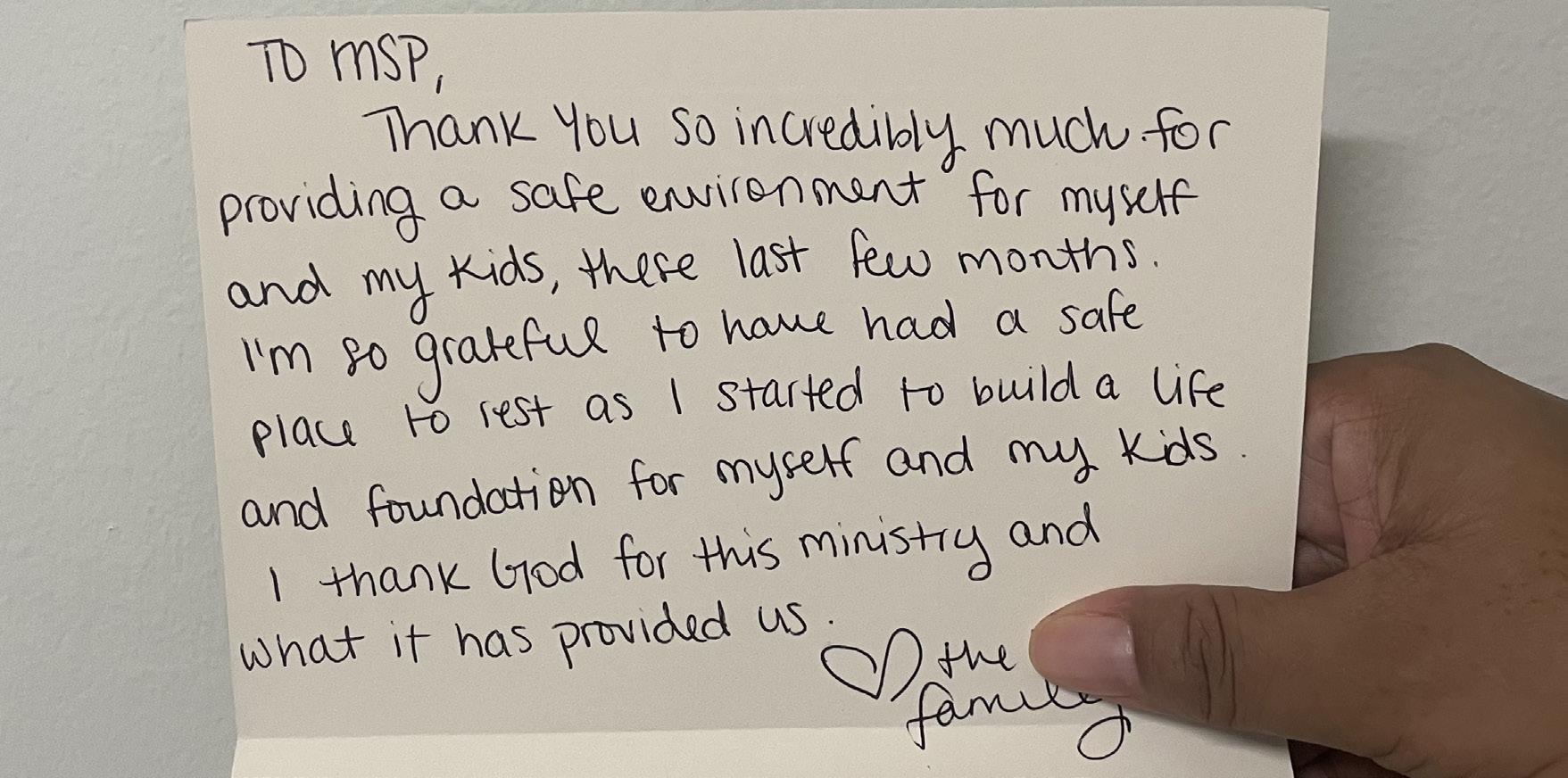 “God doesn’t love me, or I wouldn’t be here.” One of our residents told us this when she arrived at MSP, weary from a hard season in her life that had ultimately led to homelessness. At MSP, our goal is to demonstrate the love of God, guided by the word of God. When we first opened our doors in 2000, our founder, Marty Owens, was moved with compassion to care for those who felt they had nowhere to turn and that perhaps God had forgotten them. For that reason, each week our residents are invited to attend a Bible study tailored to the unique circumstances they are facing. It is not uncommon to find one of our staff members praying with one of our residents during a difficult time she may be experiencing. We know that being rooted and grounded in the word of God gives hope during troubling times, and we are grateful to Pastor Cassandra Johnson, Alex Encarnacion, and City Church for their commitment to serving our ladies throughout the year.