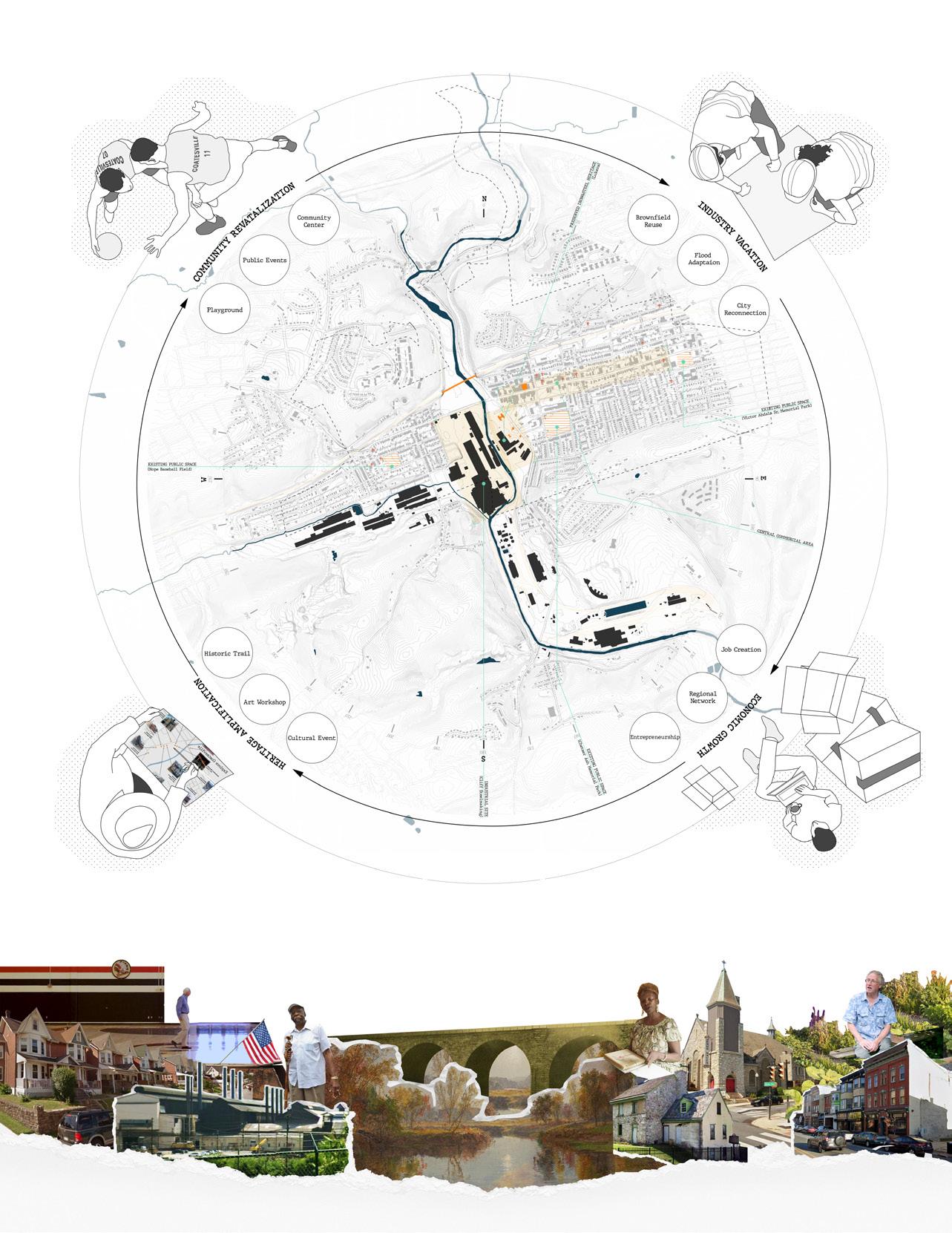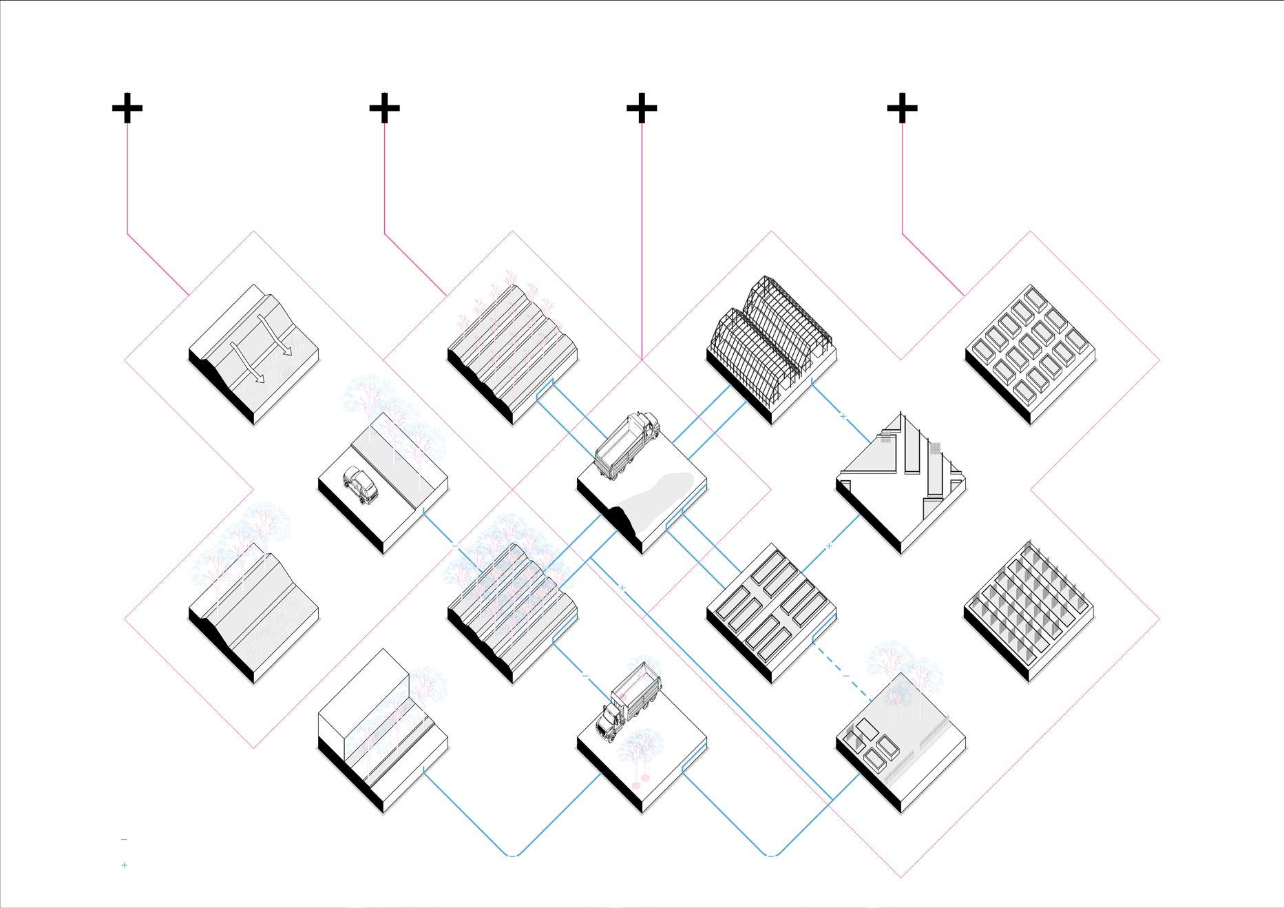 The proposed biotech manufacturing campus in Kingsessing aims to reshape the image of the life science industry as transparent and publicly engaged. This will be achieved by carefully orchestrating circulation to facilitate smooth industry operations while ensuring harmonious coexistence with public access. Such an approach fosters direct interaction and knowledge exchange between the neighborhood and biotech companies, thereby promoting a positive impact on the community.
