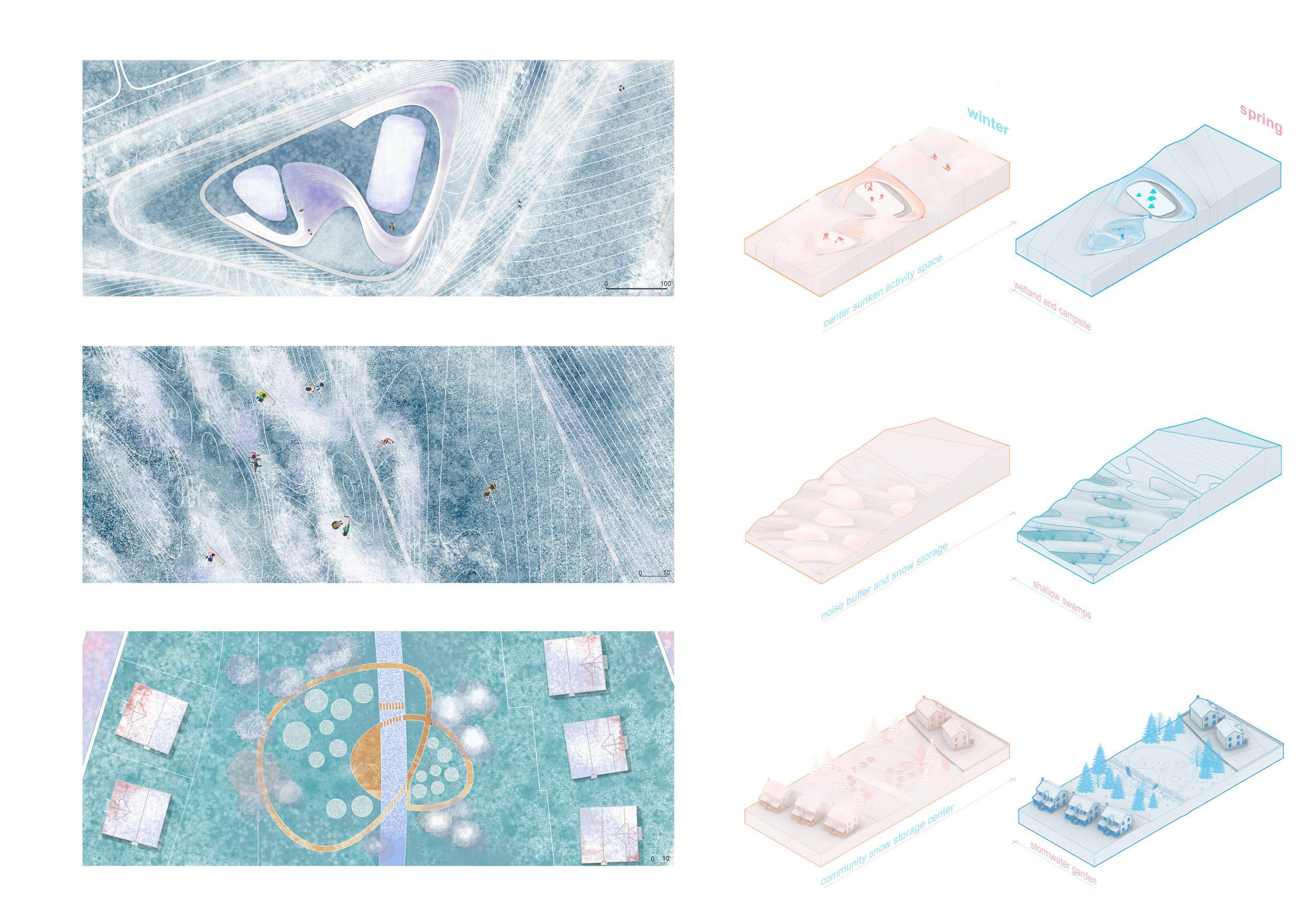 Clearings at the airport can be repurposed into sound-absorbing landscapes for noise reduction and snow storage. Inspired by the Chladni model, this design counters aircraft noise and enhances winter space positivity.