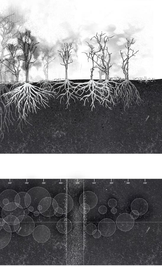 Clearings at the airport can be repurposed into sound-absorbing landscapes for noise reduction and snow storage. Inspired by the Chladni model, this design counters aircraft noise and enhances winter space positivity.