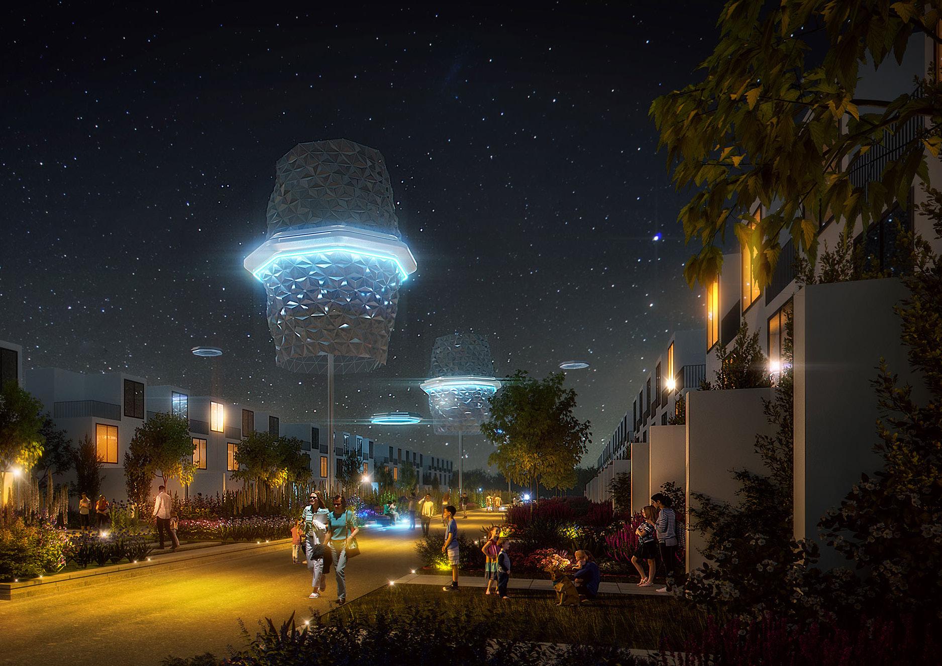 We designed an organic photovoltaic (OPV) solar system to generate 22 MWh per unit each year. The artwork provides additional social cobenefits including water harvesting for irrigation. A shortlisted entry to the 2022 Land Art Generator Initiative design competition for Mannheim in partnership with BUGA 23.