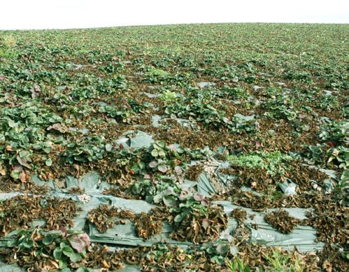 The results are very promis ing, but it is important to note that steam treatment is not an end-all cure for Fusarium wilt disease. At the trial site, disease inoculum levels were considered moderate. However, when inoculum levels are very high, our trials have shown that a four-inches-wide by threeinches-deep band of soil is not effective at controlling the disease. We hypothesize that a wider and/or deeper band of treated soil is needed for effec tive control. This fall, we will be initiating trials to examine this.