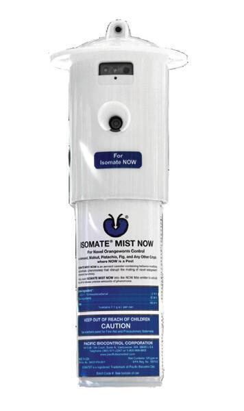 ContinuedonPage74 PROVEN EFFICACY YOU CAN TRUST Pheromone Mating Disruption ISOMATE® Mist NOW PACIFIC BIOCONTROL CORPORATION www pacificbiocontrol com ISOMATE® is a registered trademark of Pacific Biocontrol Jeannine Lowrimore Northern California 209 603 9244 Christeen Abbott-Hearn Central California 559 334 7664 Joe Devencenzi Central and Coastal California 209.642.0316 ISOMATE® Mist NOW Grower Standard 72 West Coast Nut December 2022