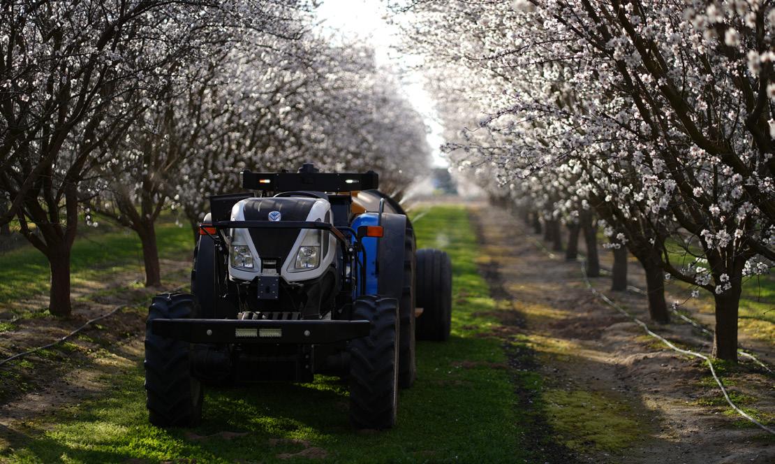 The San Joaquin Valley Air Quality Control District has helped replace more than 180 conventional nut harvesters with low-dust models since its focused replacement program was piloted in 2018. The Natural Resources Conservation Service has a separate program that provides per-acre costshare to growers who have orchards custom-harvested with low-dust equip ment. It also offers incentives to growers who harvest their own orchards with low-dust machines and are bringing new trees into production.