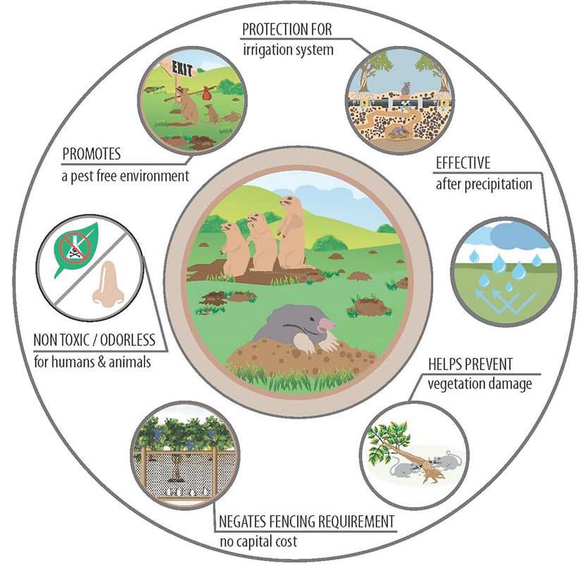 Each year small ground mammals cause extensive damage to farm elds, crops and equipment. Besides foraging on eld crops, many are burrowing animals, whose mounds and holes create hazards for livestock, obstacles for farm equipment and inhibit crops from growing on disturbed land. In other instances, these small mammals can get into stored grain or damage agricultural infrastructure (i.e. causing damage to drip irrigation lines).