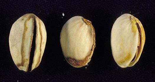 Nay also looks at the pistachio kernels for signs of internal kernel decay. This blemish, which affects the Golden Hills variety, does not affect the nut flavor.