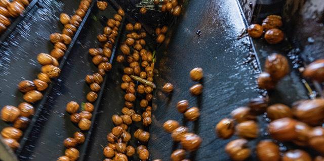 With a representative sample, nuts can be sorted according to kernel dam-