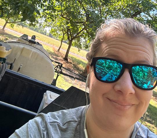 Vanessa Chancellor with G.W. Osteen and Associates collects orchard floor samples.