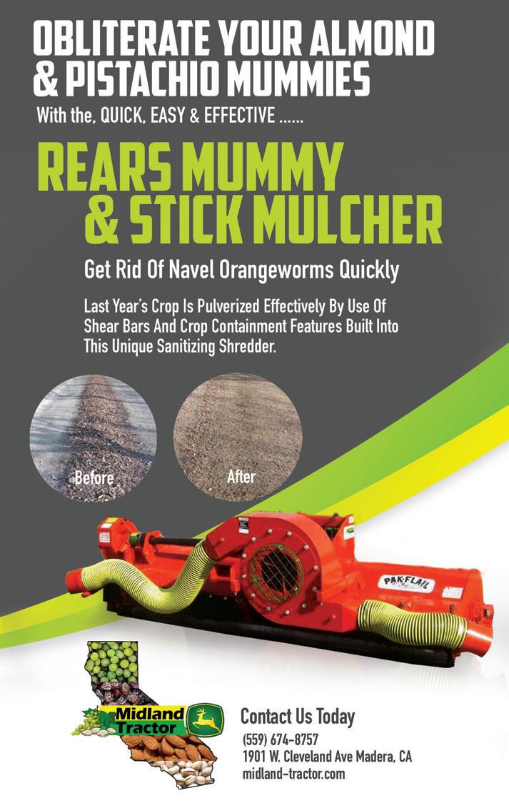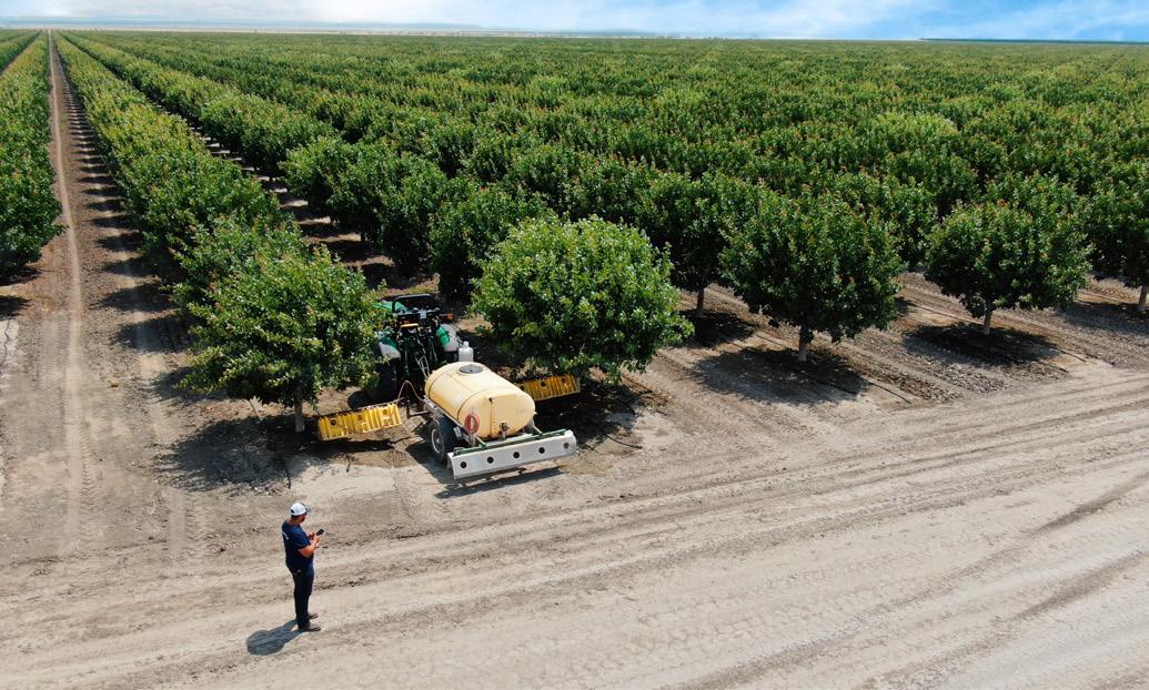 feeding our trees after harvest. IMMEDIATELY! Many of my clients now feed almonds after the Nonpareils are picked up, even before the pollinators are shaken. At the very least, I beg them to get something on when the last nut leaves the rows. There is typically a major root flush happening when trees are preparing to recover. Pistachios can be done between the first and second shakes. That’s the time to give them a good drink of balanced postharvest nutrition. You want to utilize every bit of growing season we have left. The better those trees recover and store, the better equipped they are to maximize bloom in spring.