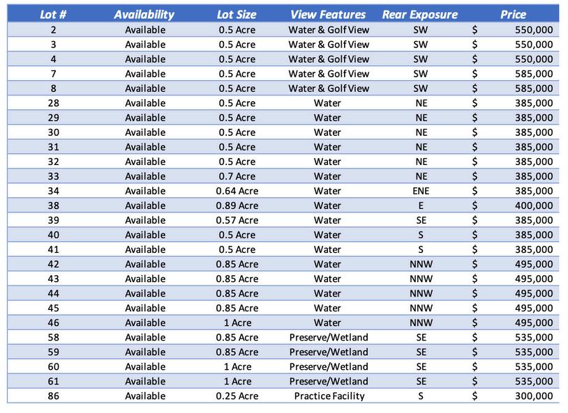93 Homesites for Homes by Two Custom Builders Full Golf and Sport Memberships