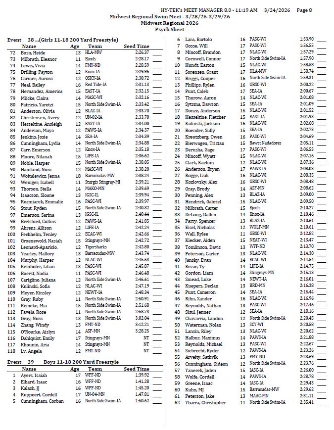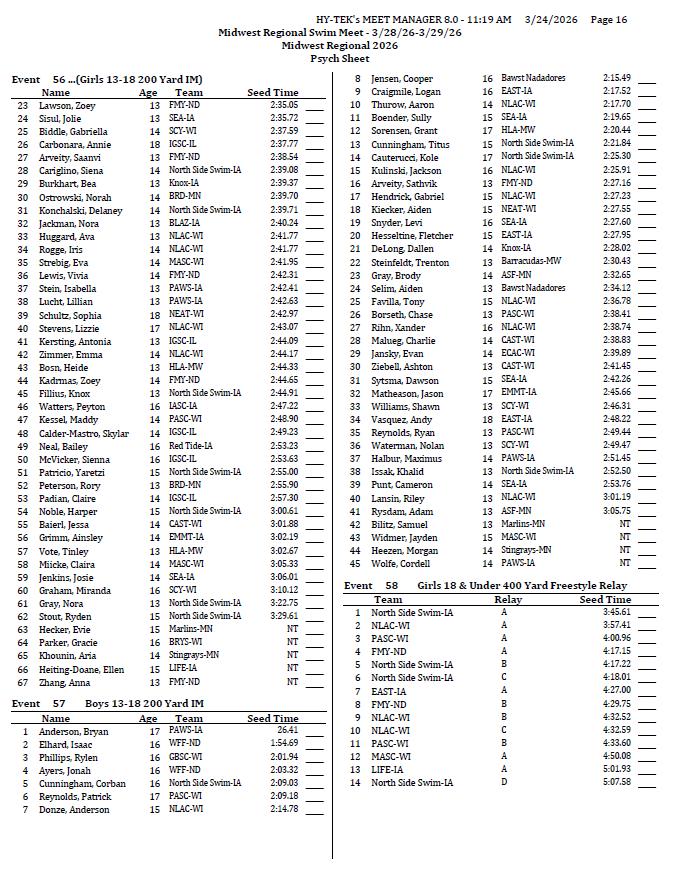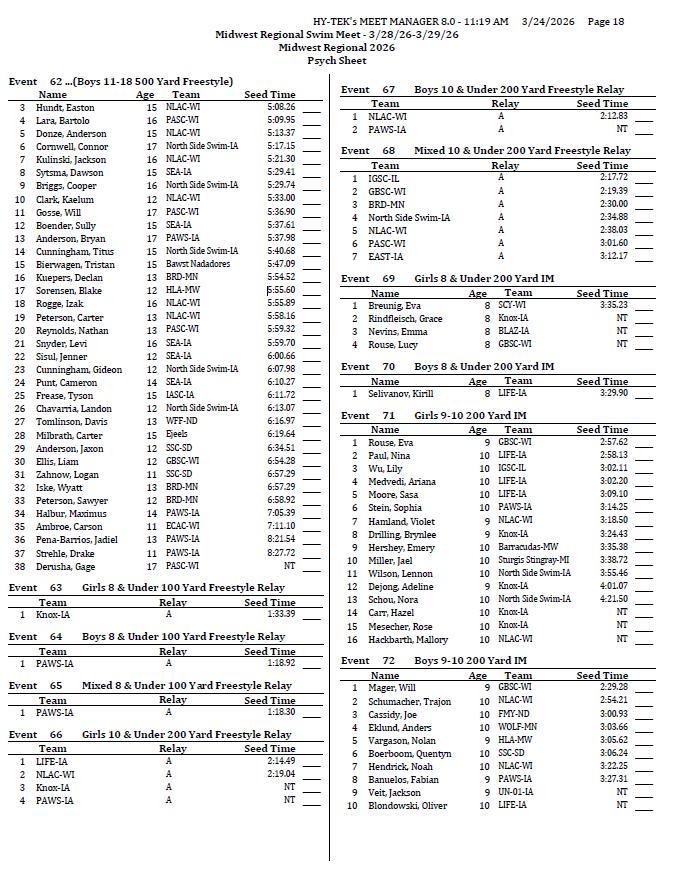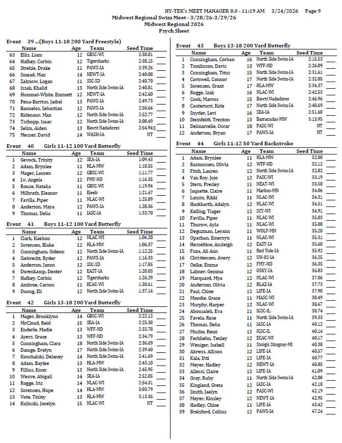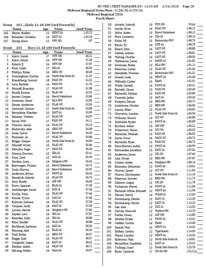 On behalf of the Minnesota Youth Athletic Services (MYAS) and the Spring Lake Park High School Swim Team, we welcome you to the 2026 Midwest Regional Swim Meet. We look forward to another great event. We have athletes competing from eight different states this weekend!