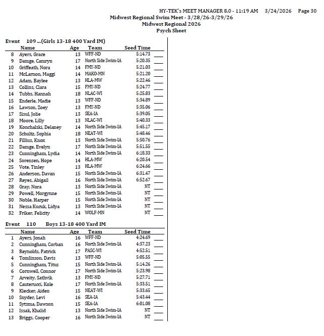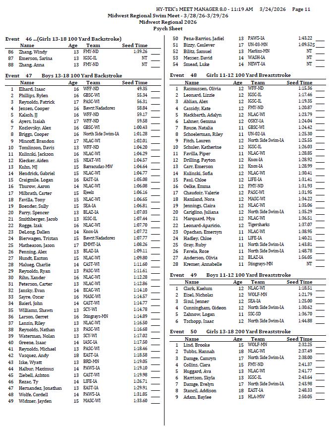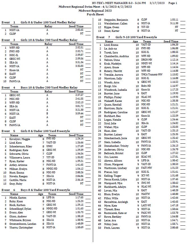 2026 Midwest Regional Swim Meet
