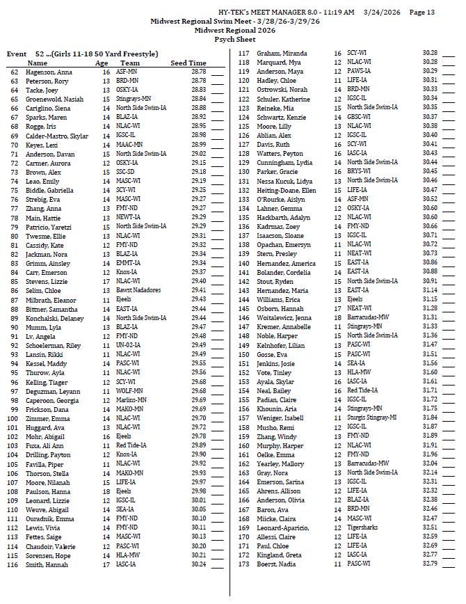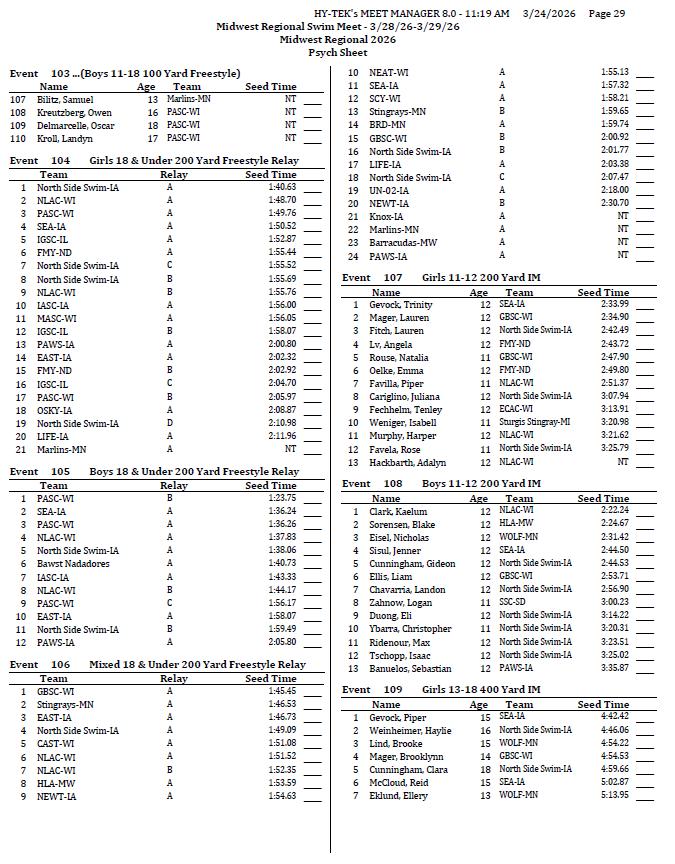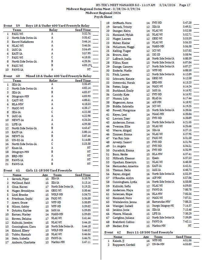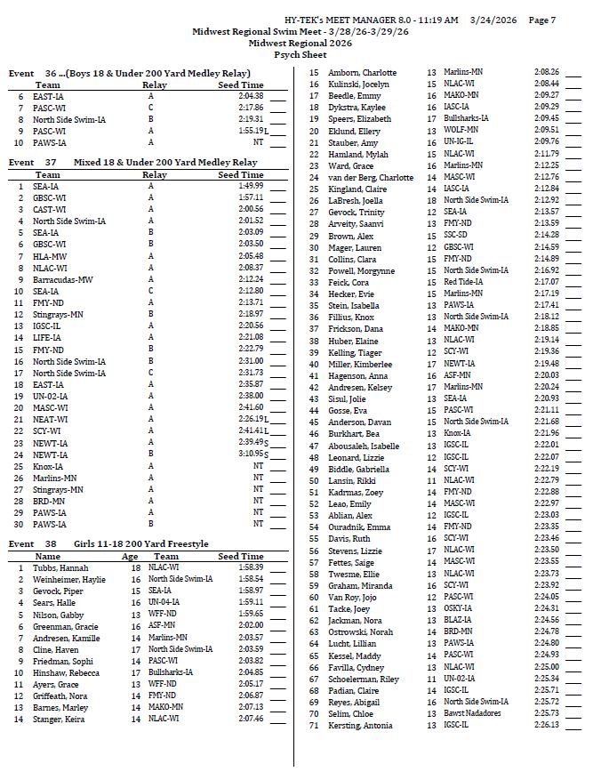 2026 Midwest Regional Swim Meet TEAMS