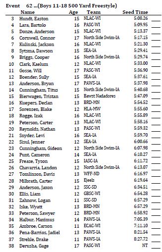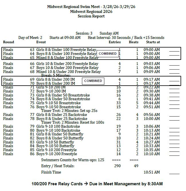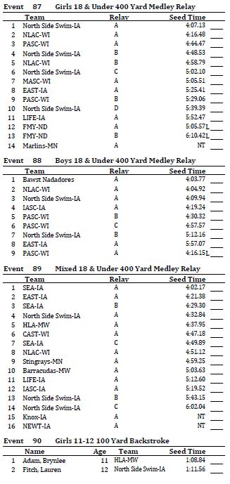 A: You can go to the Midwest Regional Swim Meet website (www.myas.org/swimming) to find all event specific information.