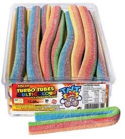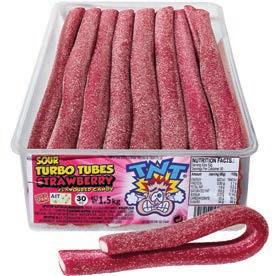 TNT Sour Turbo Tubes Strawberry 1.5kg Units per outer 30 Code: AJ21 Rec Retail $1.10