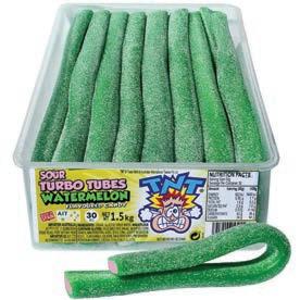 TNT Sour Turbo Tubes Watermelon 1.5kg Units per outer 30 Code: AJ22 Rec Retail $1.10