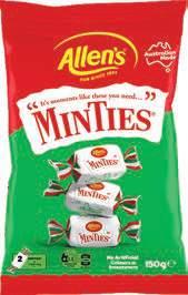 ALLEN’S Minties 150g Units per outer 12 RRP $5.00