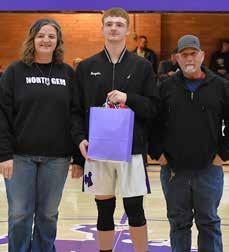 The North Gem Cowboys basketball team celebrated their seniors last Friday night in their final home game of the regular season. Each of the senior players as well as the senior cheerleaders were escorted onto the court with their parents. The loyal Cowboy fans showed their appreciation to each of the athletes’ years of dedication to the school and their sport. With the pomp and circumstance that comes with senior night all taken care of the game got underway.
